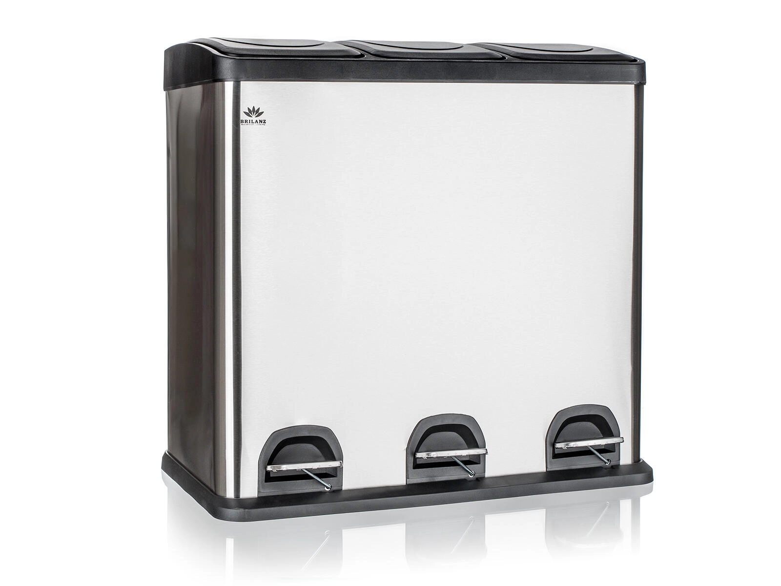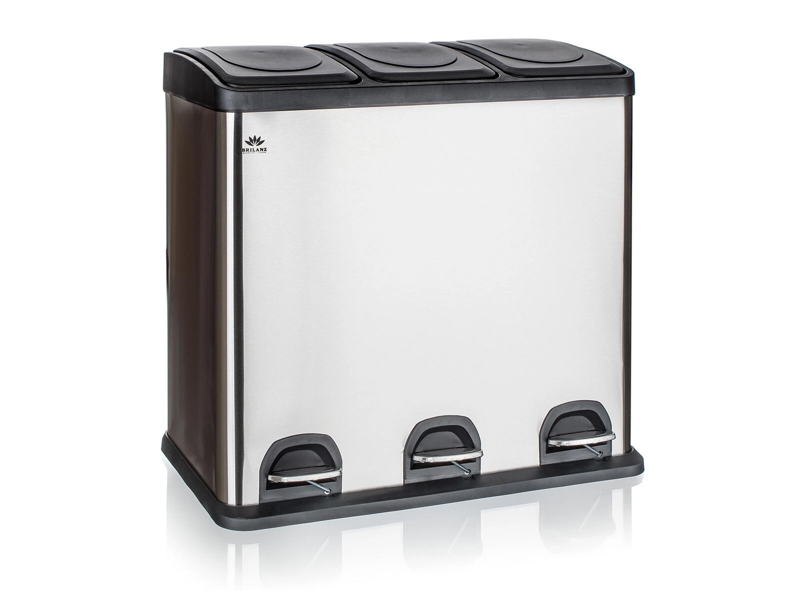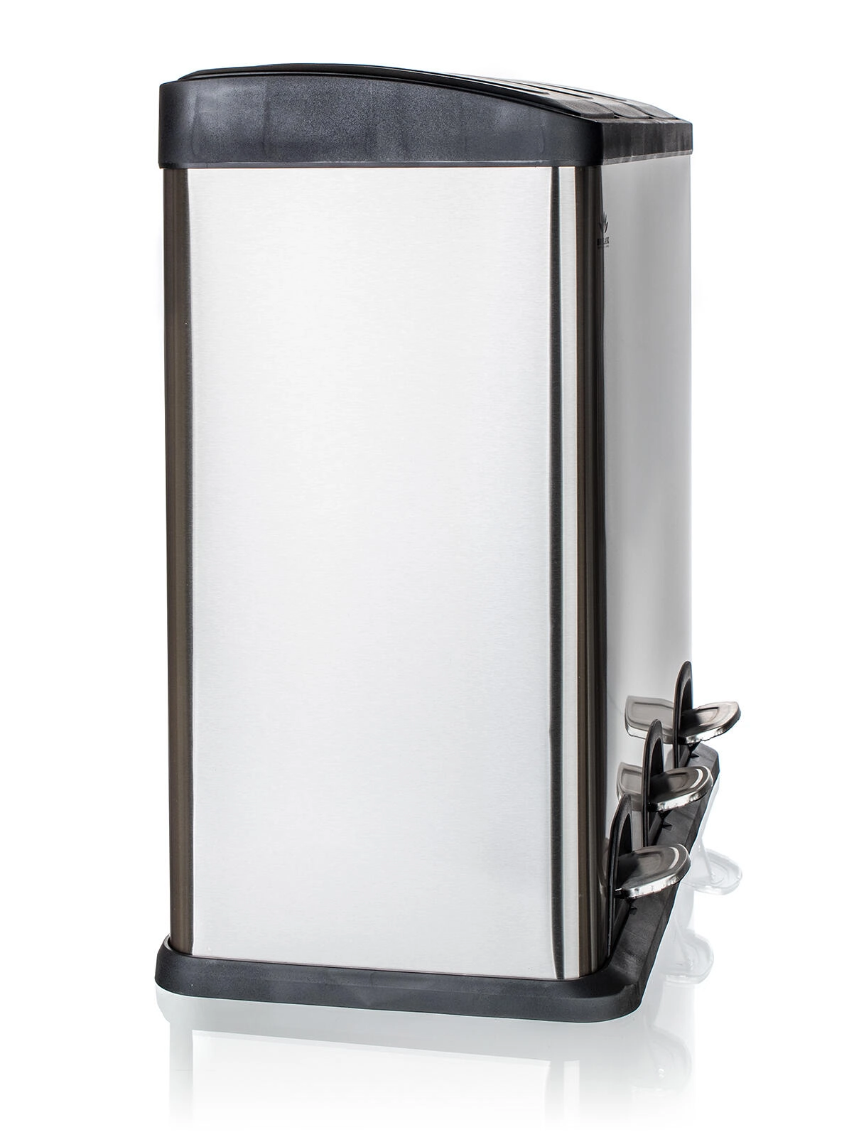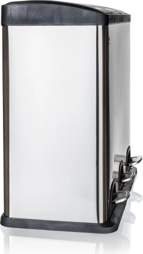 Ez az elegáns szemetes a rozsdamentes acél és a tartós műanyag kombinációjával átlátható, tiszta megoldást nyújt a szelektív hulladékgyűjtéshez. A három független pedál külön-külön működteti a fedeleket, így csak azt a rekeszt nyitja, amelyikre éppen szükség van – kéz érintése nélkül, minimális szagképződéssel.