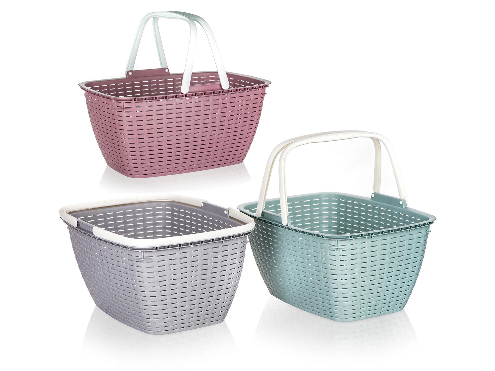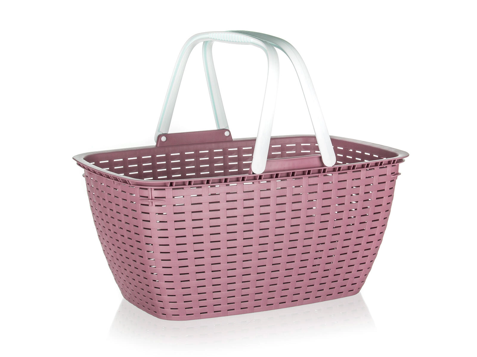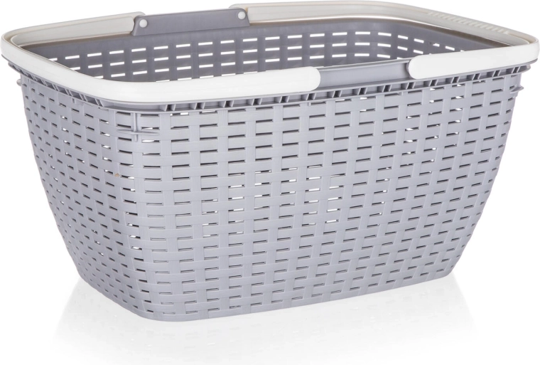 A kosár ergonomikus, lehajtható fogantyúkkal rendelkezik a biztonságos fogásért, valamint stabil, sík aljjal a biztos lerakáshoz. Tartós, könnyen tisztítható műanyagból készült, és vonzó színkeverékben kapható, így illik bármely otthonba, irodába vagy autóba.