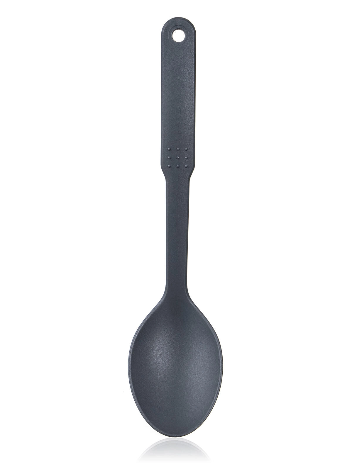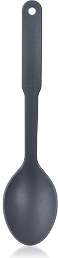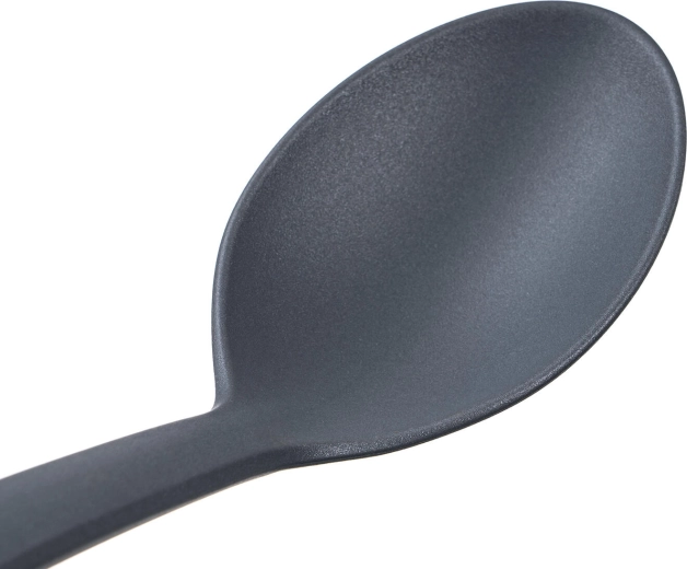 A CULINARIA Grey praktikus, 30,5 cm hosszú, tartós nylonból készült konyhai kanál ideális a mindennapi főzéshez. Kíméletes a tapadásmentes edényekhez, kényelmes, akasztólyukas nyéllel rendelkezik, és könnyen tisztítható – mosogatógépben mosható. Hőálló egészen 210 °C-ig.