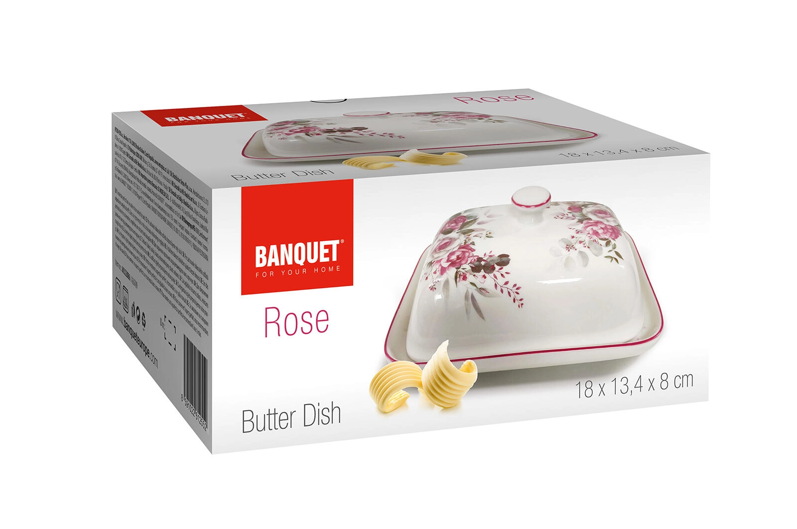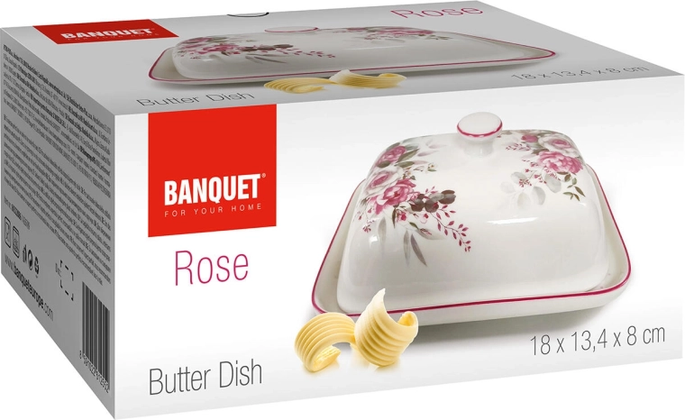 Vigyen időtlen eleganciát az asztalára a kiváló minőségű kerámiából készült ROSE vajtartóval. A szorosan záródó fedélnek köszönhetően a vaj védett a szagoktól és sokáig friss marad, míg a sima máz megkönnyíti a tisztítást. A pasztell árnyalatú rózsaminta könnyen párosítható más edényekkel, és feldob bármilyen tálalást.