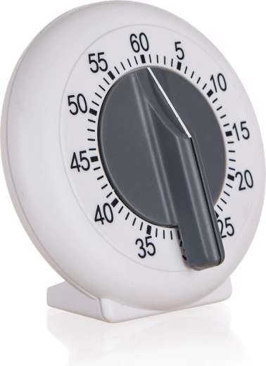 A CULINARIA mechanikus konyhai időzítő elegáns fehér–szürke kivitelben ideális segítőtárs a főzés, sütés és otthoni feladatok pontos időzítéséhez. Csak állítsd a gombot a kívánt időre, és az időzítő csendben visszaszámol; a végén jól hallható hangjelzés szólal meg.