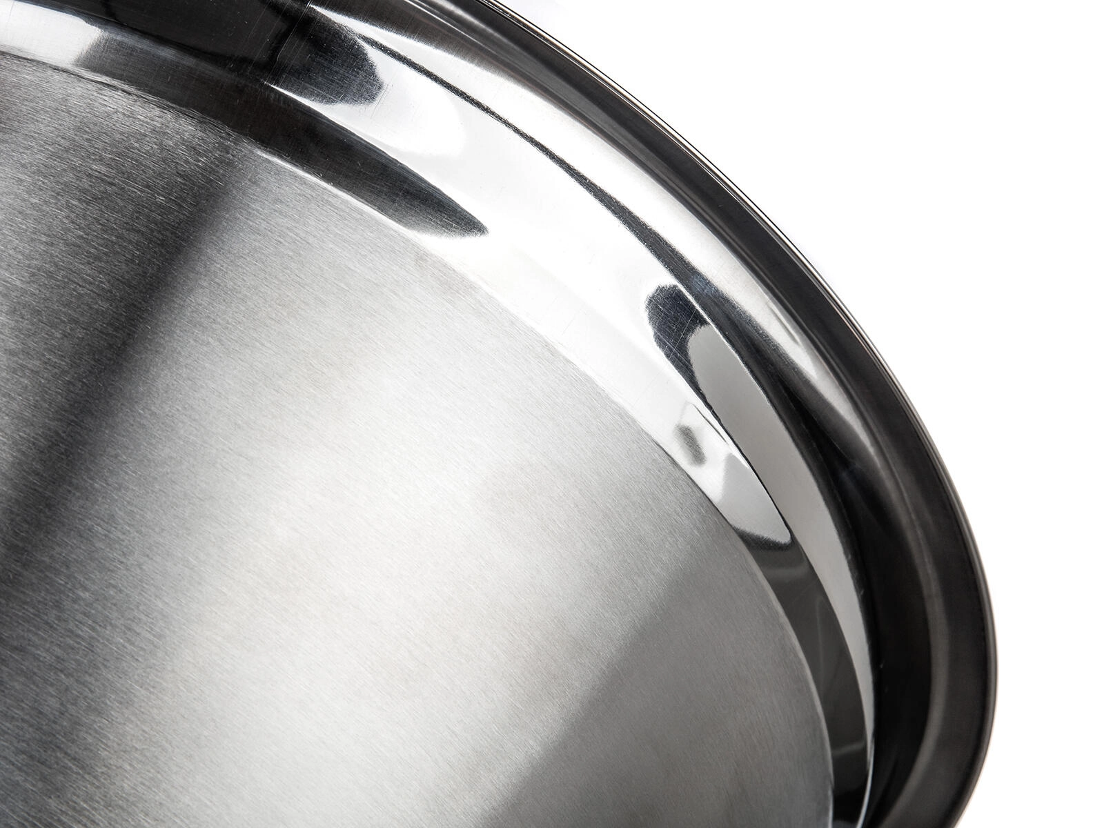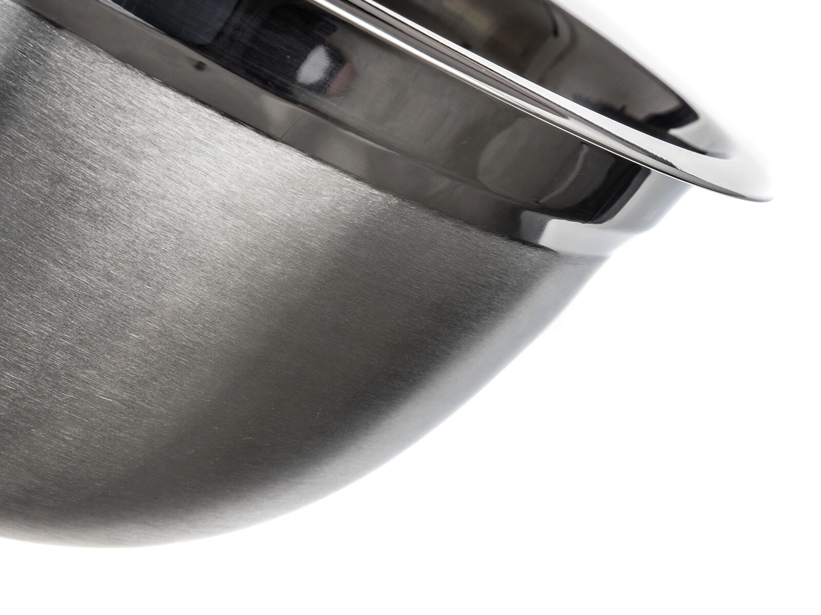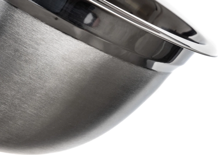 A selyemfényű, kefélt felület és a polírozott perem kombinációja modern megjelenést ad a tálnak, és növeli a karcállóságot.