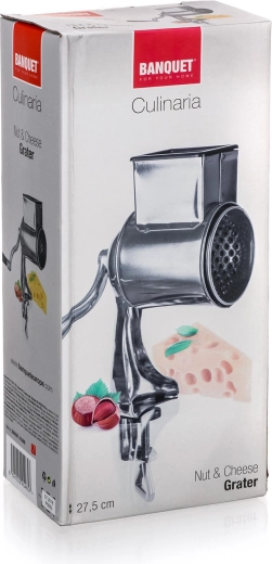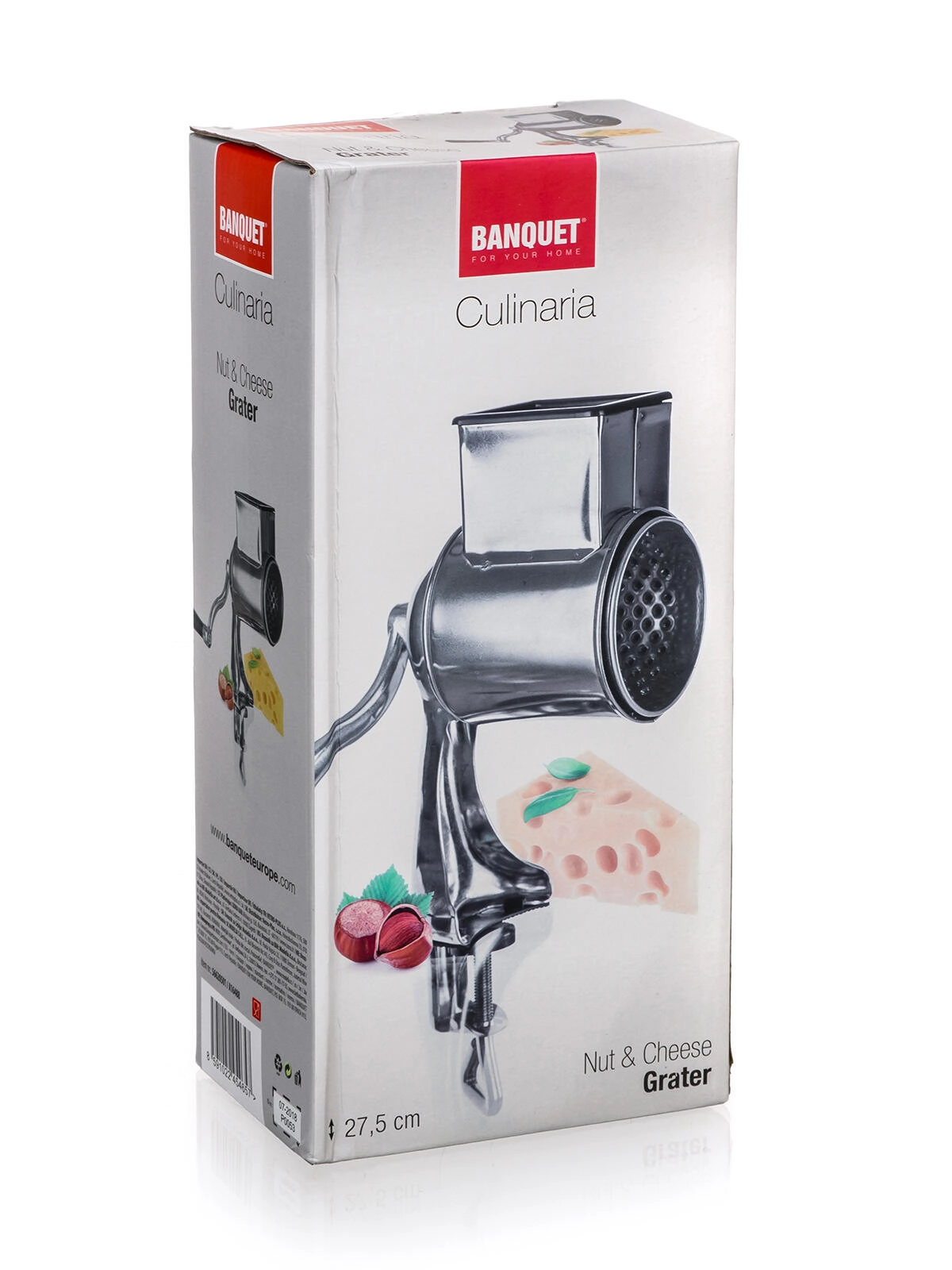 Fedezze fel a megbízható CULINARIA kézi darálót, amely minőségi rozsdamentes acélból készült, és könnyedén megbirkózik a zsemlemorzsával, dióval és kemény sajtokkal. A masszív rozsdamentes dobnak és a simán járó karnak köszönhetően erőfeszítés nélkül érhet el egyenletes őrlést.