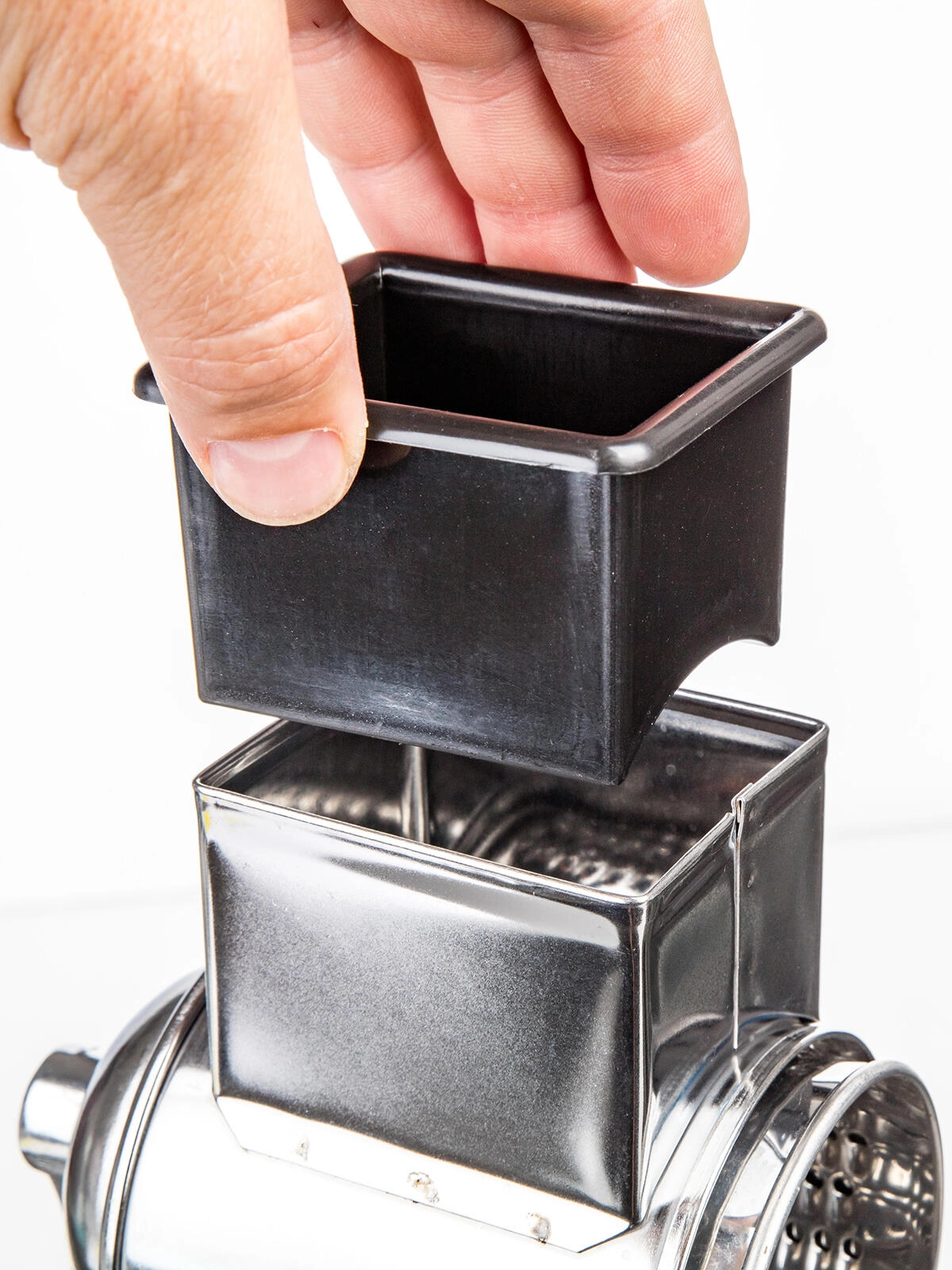 A minőségi rozsdamentes acél dob hatékony zúzást biztosít zsemlemorzsához, diófélékhez és kemény sajtokhoz, hosszú élettartammal.
