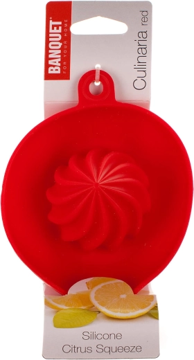 Praktikus Culinaria szilikon citrusprés piros színben a könnyű és gyors facsarásért citromhoz, narancshoz és más gyümölcsökhöz. A tál beépített kiöntőcsővel megkönnyíti a lé tiszta, maszatolás nélküli kiöntését. Az ellenálló és rugalmas szilikon kényelmes használatot és egyszerű tisztítást biztosít.