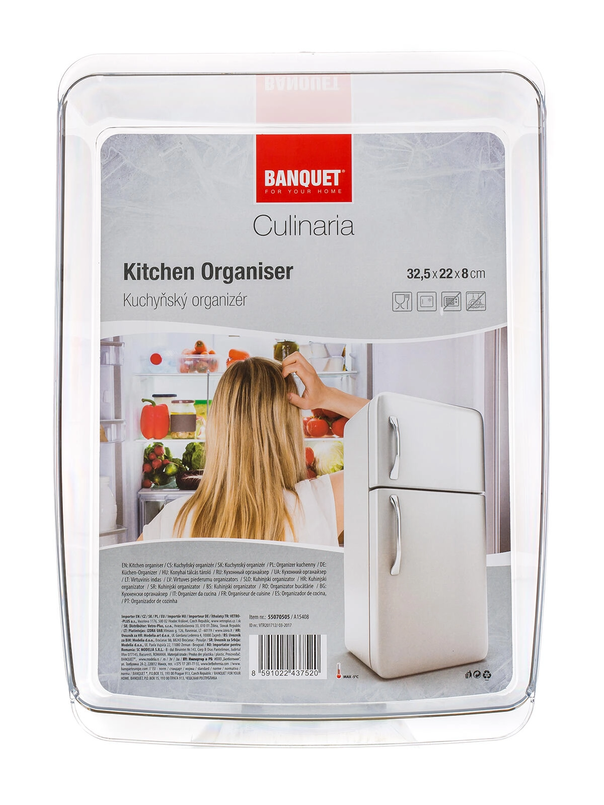 Rendezze be okosan és erőfeszítés nélkül a hűtőjét. A CULINARIA hűtőszervező 32,5 × 22 × 8 cm-es méretben strapabíró, átlátszó műanyagból készült, így azonnal látja, mi hol található. Remek választás tejtermékekhez, gyümölcsökhöz, zöldségekhez, szószokhoz és csomagolt élelmiszerekhez.