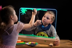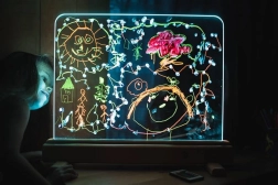 Gyújtsd fel a gyermeki fantáziát! A Jonely világító tábla tartós, edzett üveg lapja lehetővé teszi a festést vízfestékkel, ujjal és lemosható filctollakkal. A felület könnyen tisztítható, és a kétoldalas rajzolásnak köszönhetően a testvérek egyszerre is szórakozhatnak. Az alsó keretbe épített LED-diódák szépen átvilágítanak minden vonást, és ragyogó művekké változtatják a rajzokat.