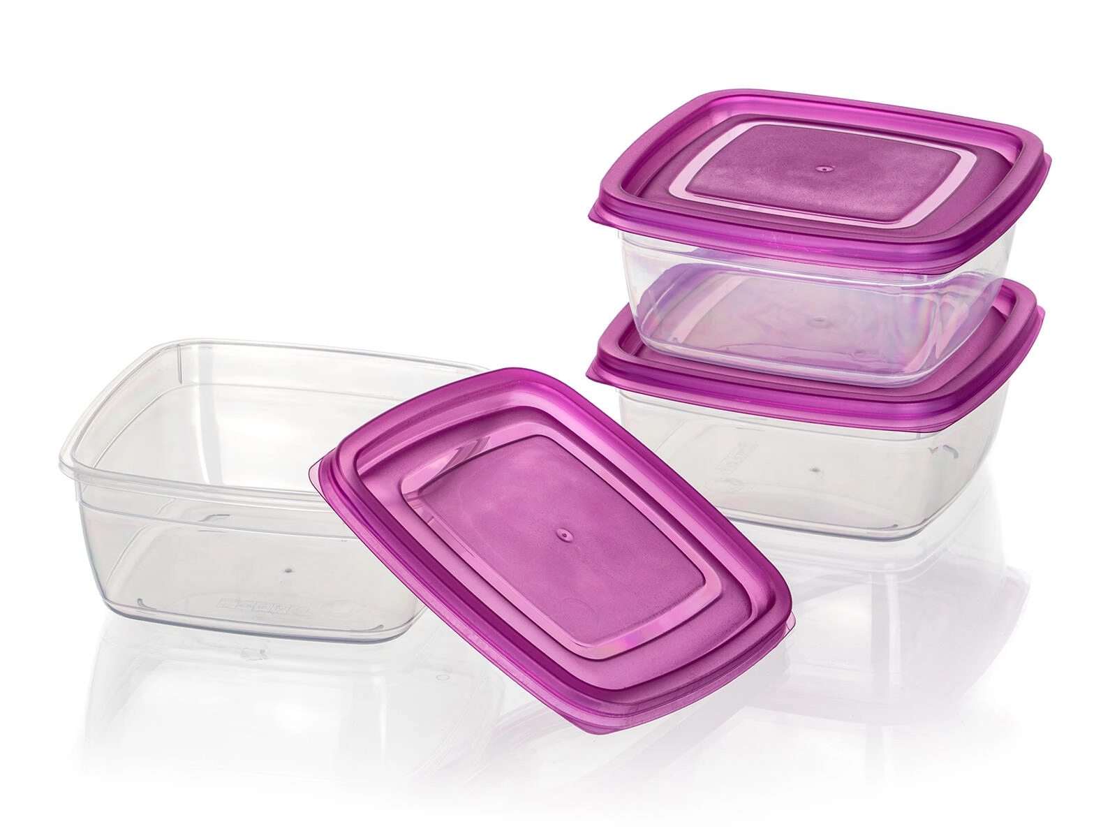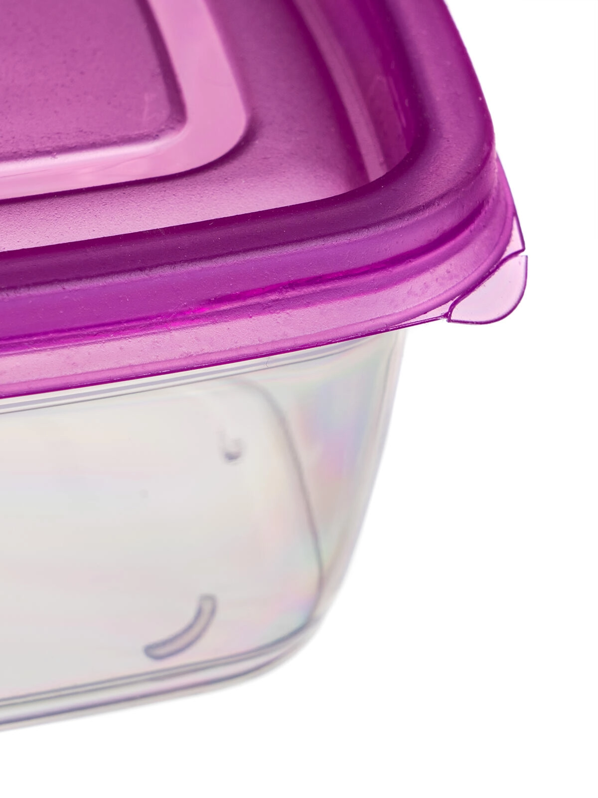 Ezzel a kompakt, 3 darabos, 0,5 l-es négyzet alakú dobozkészlettel okos és esztétikus megoldást kap az élelmiszerek tárolásához. Az átlátszó, strapabíró műanyag edények megkönnyítik a tartalom ellenőrzését, míg a lila fedelek megbízhatóan rápattannak és segítenek tovább frissen tartani az ételeket.