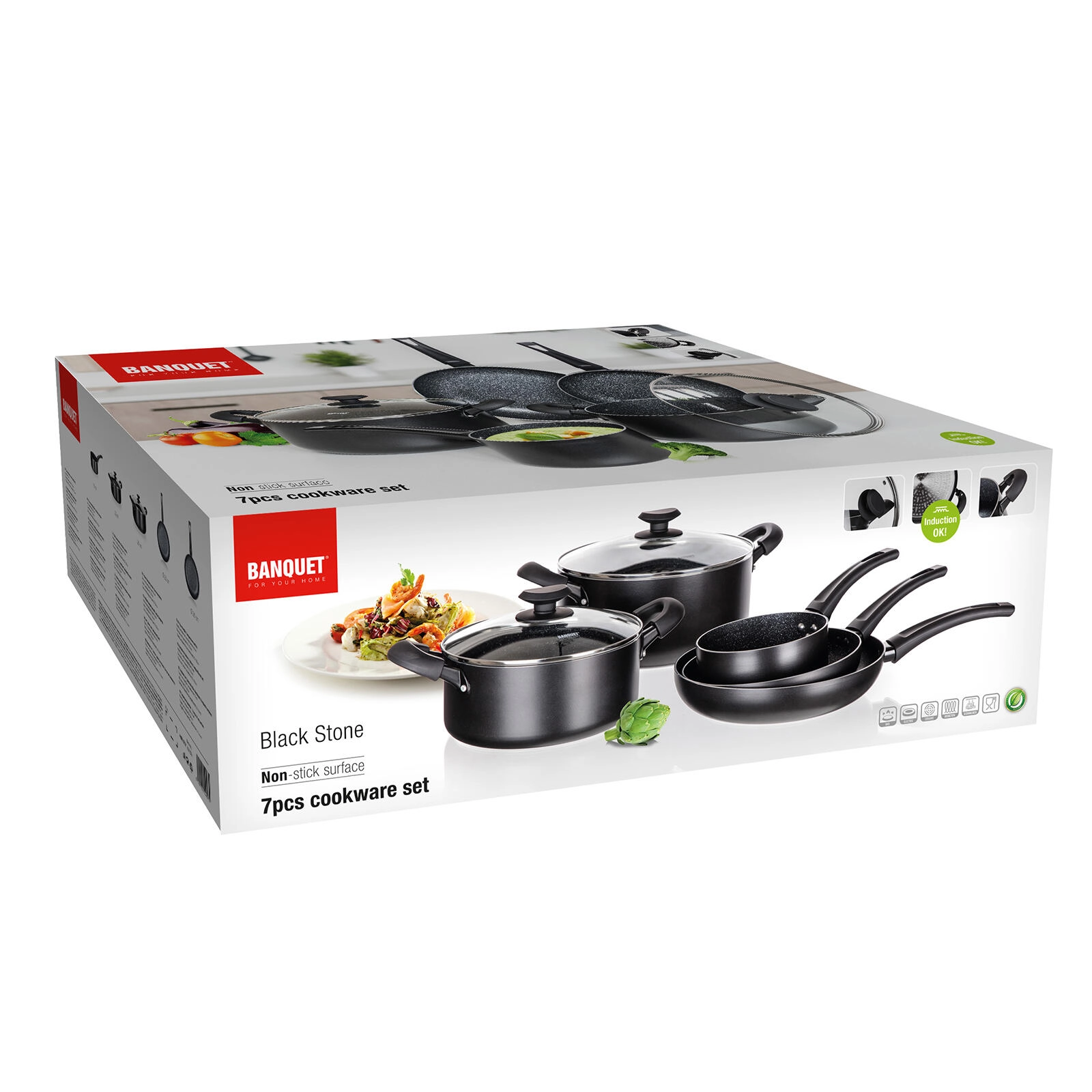 A univerzális, 7 részes, mindennapi használatra szánt edénykészlet ötvözi a strapabíró tapadásmentes felületet, a teljes felületű indukciós aljat és a ergonomikus, soft touch fogantyúkat. Az öntött alumínium gyors hőeloszlást biztosít, az edények karc-, ütés- és deformációállóak, az átlátszó üvegfedőknek köszönhetően pedig a főzés menetét mindig szemmel tarthatja.