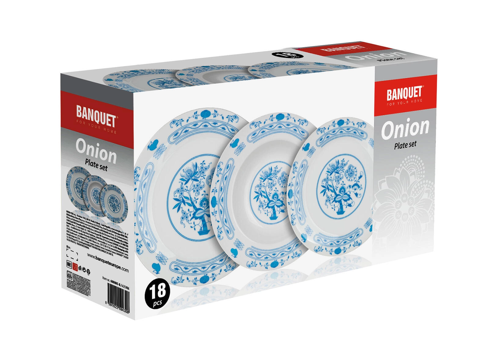 Az elegáns ONION porcelán étkészlet ikonikus hagymamintás dekorral stílust visz minden terítékbe. 18 részből áll előételek, levesek és főételek tálalásához. A minőségi porcelán mosogatógépben mosható és mikrohullámú sütőben használható, így ideális a mindennapi használathoz és az ünnepi terítékhez is.