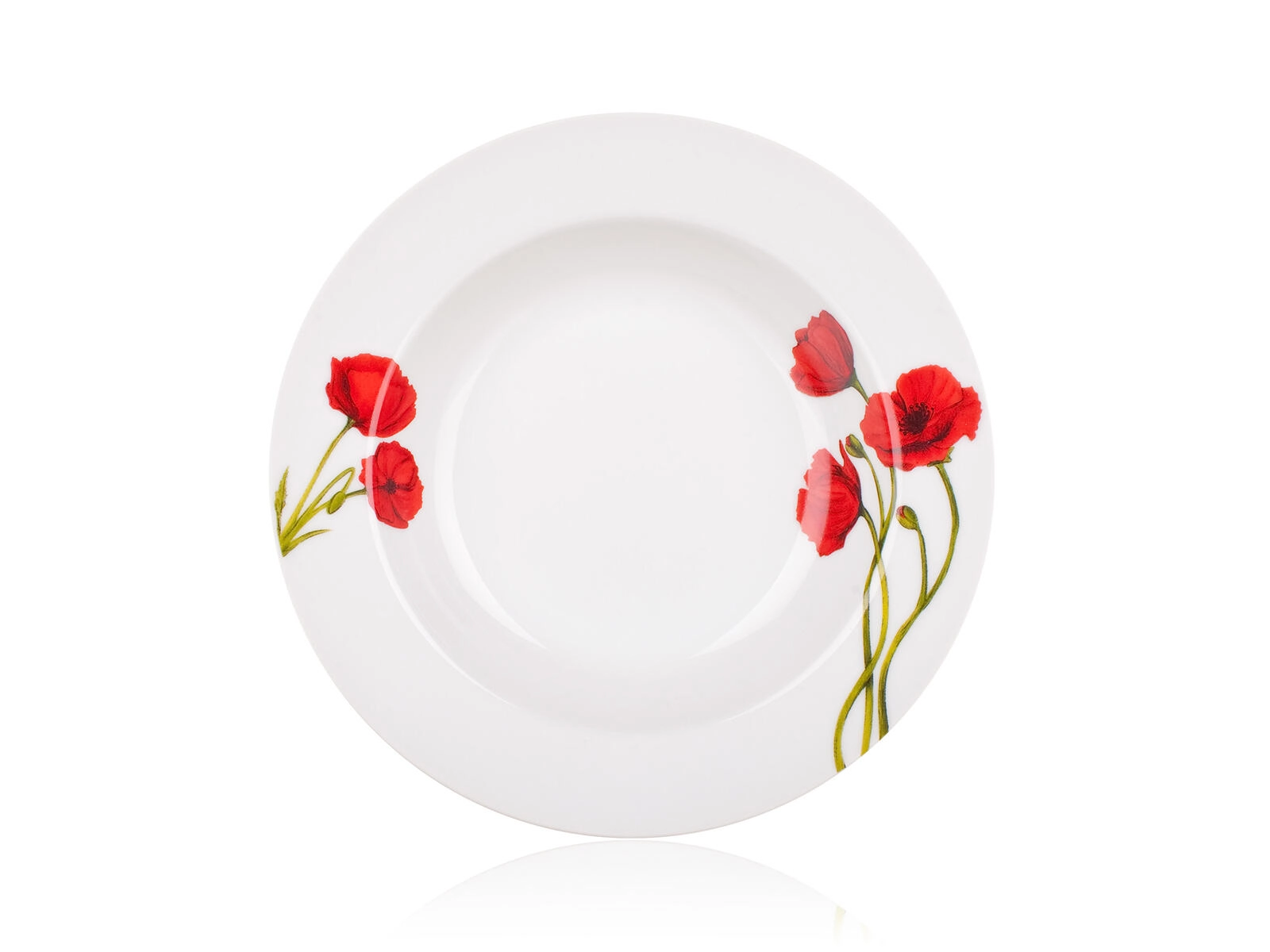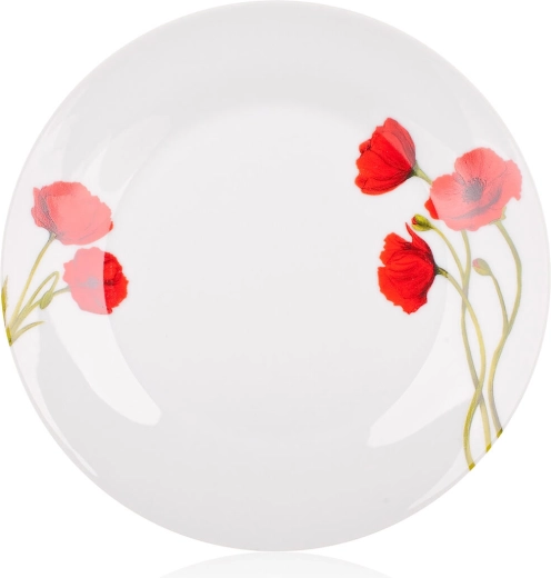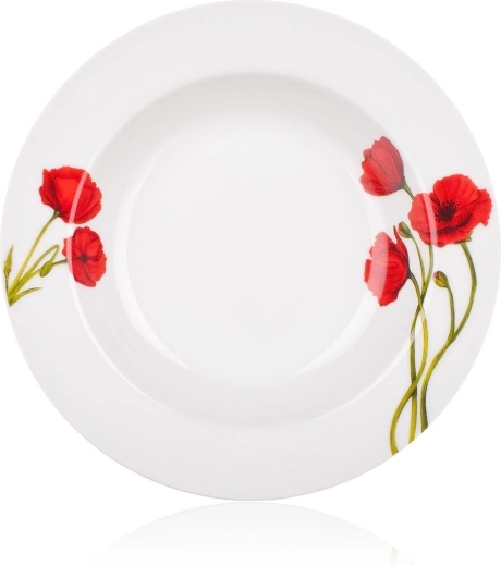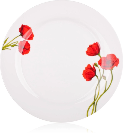 A finom fehér alapot karakteres pipacsminta egészíti ki a tányérok peremén. Vonzó, harmonikus megjelenést teremt minden alkalomra.