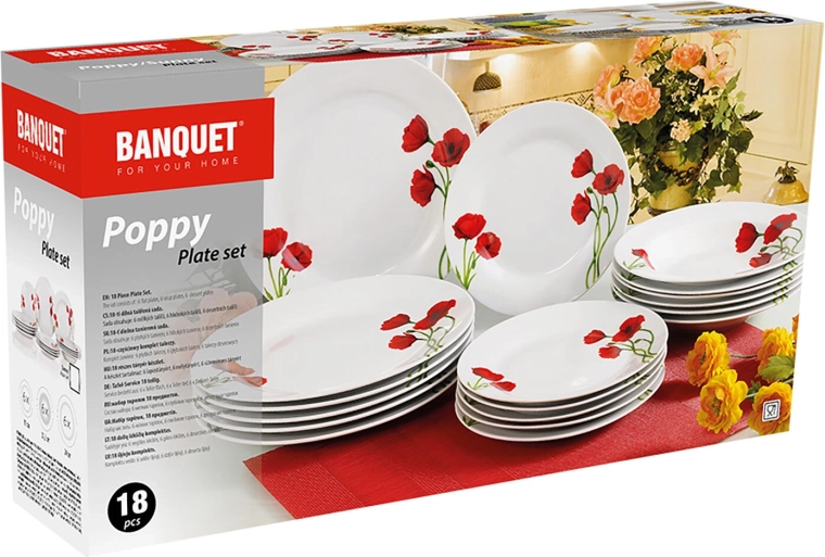 Fedezze fel a POPPY virágmintás porcelán időtlen szépségét. Ez a 18 részes készlet a lágy fehér alapot határozott pipacsdekorral ötvözi, amely azonnal beragyogja az asztalt. Ideális mindennapi használatra és ünnepi alkalmakra egyaránt.