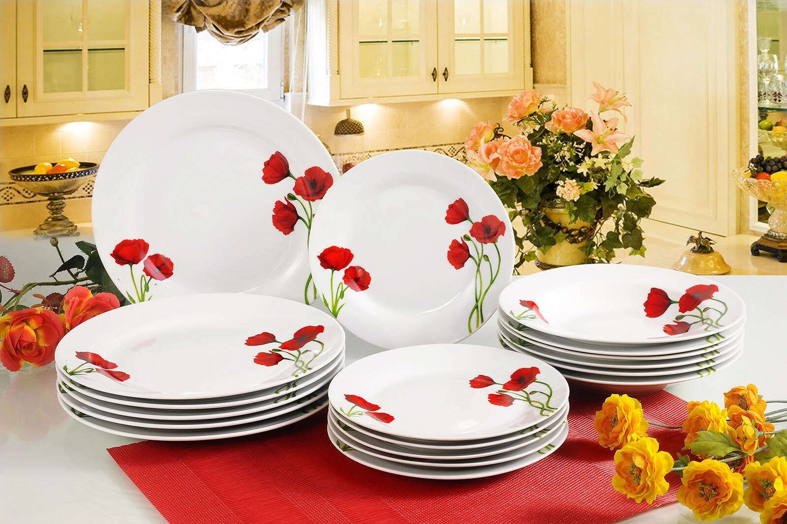 POPPY pipacs mintás porcelán étkészlet, 18 részes
