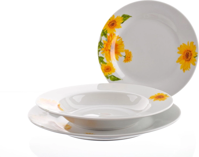 SUNNY napraforgómintás porcelán étkészlet, 18 részes, fehér