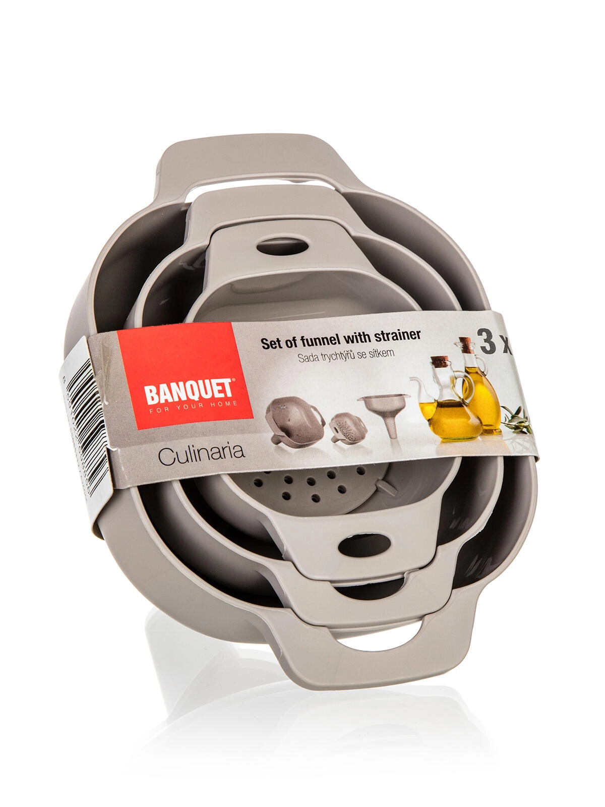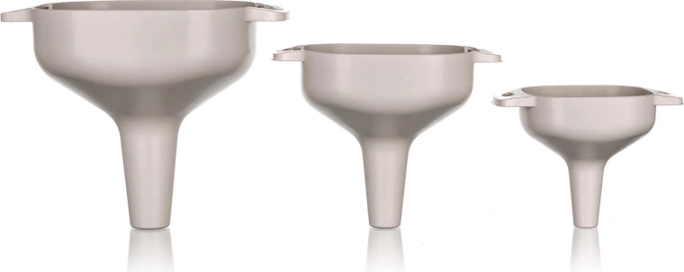 A háromdarabos, szűrővel ellátott CULINARIA műanyag tölcsérkészlet elegáns latte színben megkönnyíti a folyadékok átöntését keskeny nyakú edényekbe és azok szűrését. Az eltávolítható szűrő bármely tölcsérméretbe behelyezhető, így tiszta és pontos átöntést biztosít kiömlés nélkül, otthon és a nyaralóban egyaránt.