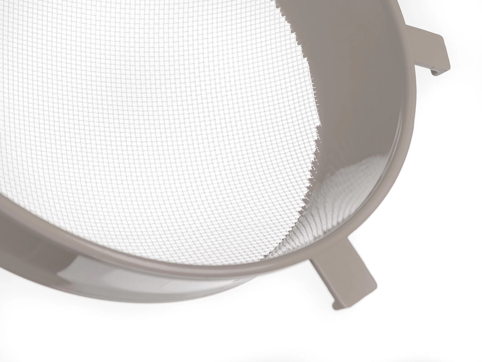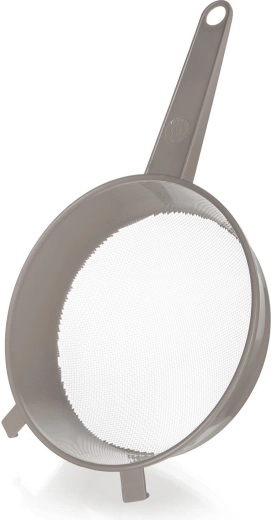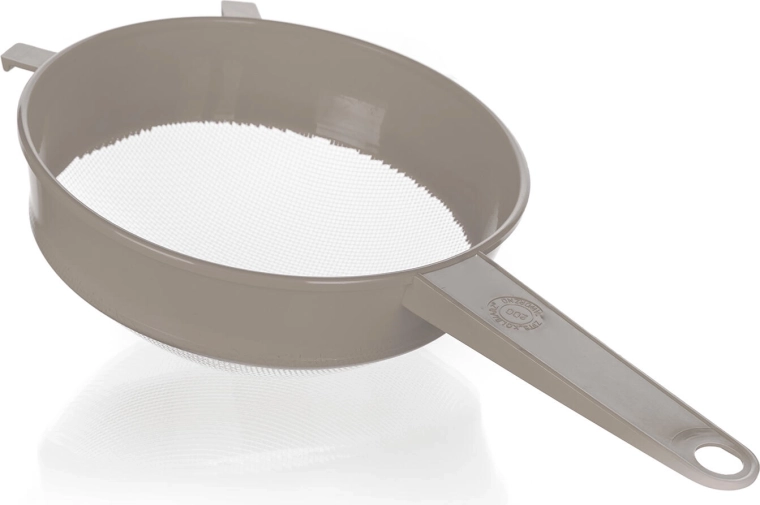 Praktikus, 20 cm átmérőjű konyhai szűrő elegáns latte árnyalatban, mindennapi használatra. Finom szitája megbízhatóan felfogja az apró részecskéket, megkönnyítve a tészta, szószok szűrését és az alapanyagok átöblítését. A kényelmes fogantyú és a támasztófülek stabilitást biztosítanak munka közben. Finom szita, kényelmes használat és tartós műanyag a hosszú élettartamért.