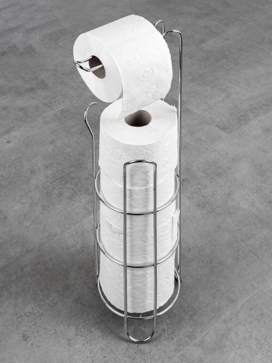 Tartsa fürdőszobáját rendezettnek és stílusosnak. Ez a szabadon álló WC‑papírtartó minőségi krómból több tartalék gurigának kínál helyet, miközben felül kényelmes a lehúzás. Karcsú profiljának köszönhetően kisebb fürdőszobákba és WC‑kbe is illik.