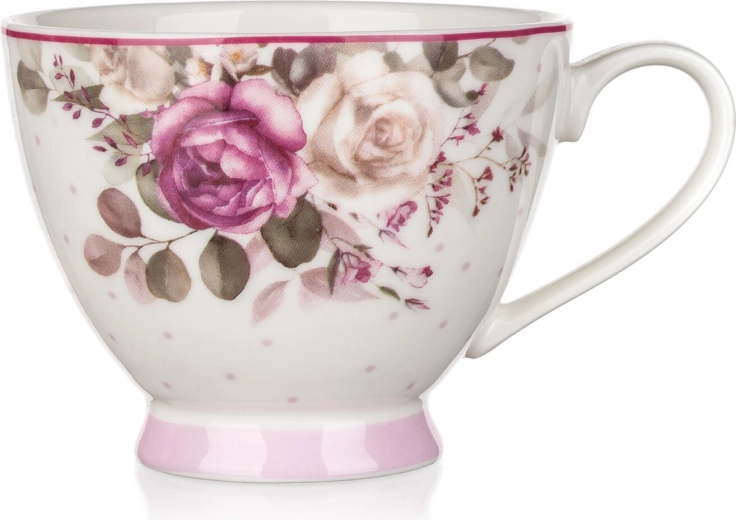 Elegáns ROSE kerámia bögre 210 ml űrtartalommal, romantikus virágmintával, ideális a mindennapi és az ünnepi pillanatokhoz. Élvezze a kávét vagy teát stílusosan – a bögre mikrohullámú sütőben használható és mosogatógépben mosható, remekül kiegészíti a terítékét.