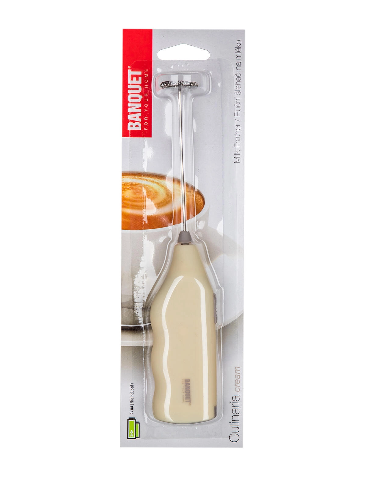 Praktikus Culinaria kézi tejhabosító krémszínben, amely gyorsan készít finom habot cappuccinóhoz, lattéhoz és forró csokoládéhoz. Ergonomikus, tartós ABS markolattal, 18/8 rozsdamentes habosító spirállal és kompakt mérettel a könnyű használatért és tárolásért. 2× AA elemmel működik (nem tartozék).