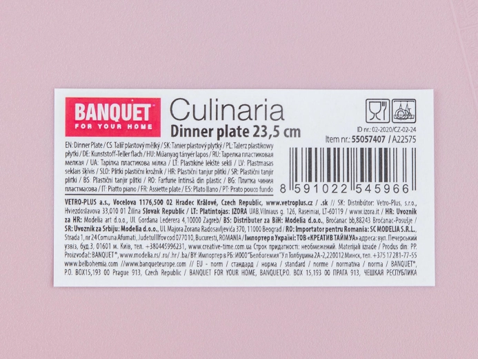 A rózsaszín CULINARIA sekély tányér 23,5 cm átmérővel praktikus megoldás a mindennapi használatra otthon, a nyaralóban vagy kerti összejöveteleken. A tartós műanyag megkönnyíti a kezelést, könnyű, mégis stabil az asztalon. Matt felülete és letisztult vonalai modern, elegáns megjelenést kölcsönöznek a terítéknek.