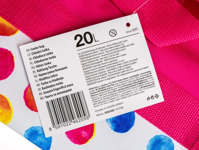 Stílusos, 20 l űrtartalmú hűtőtáska, amely tovább frissen tartja ételeit és italait a strandon, pikniken vagy kempingezéskor. A minőségi PE habszigetelésnek és a strapabíró poliészternek köszönhetően kiváló hőszigetelő tulajdonságokat, könnyű karbantartást és praktikus méreteket (34 × 17 × 34 cm) kínál. A színes pöttyös minta fehér-piros kivitelben vidám stílust kölcsönöz felszerelésének.