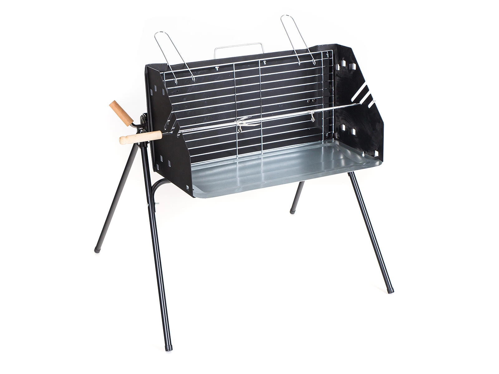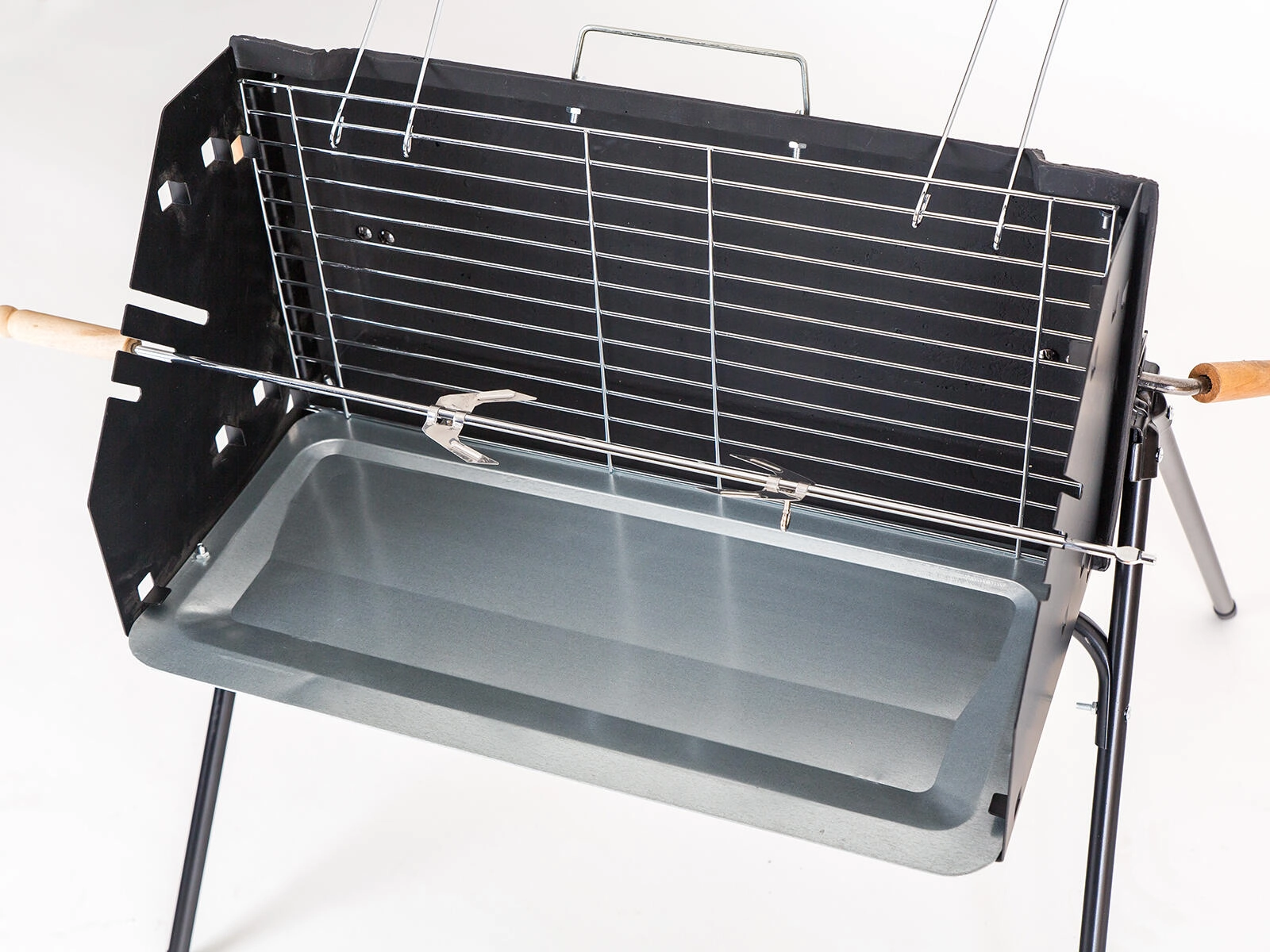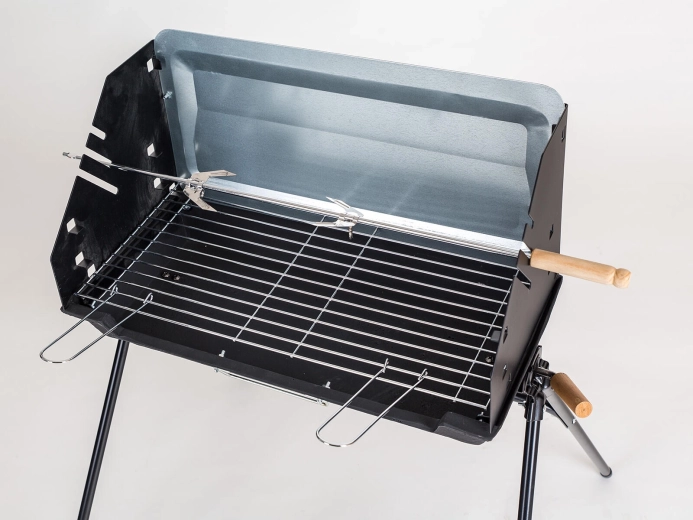 - Nyárs a csomagban – forgó nyárs két dupla villával a biztos rögzítéshez.