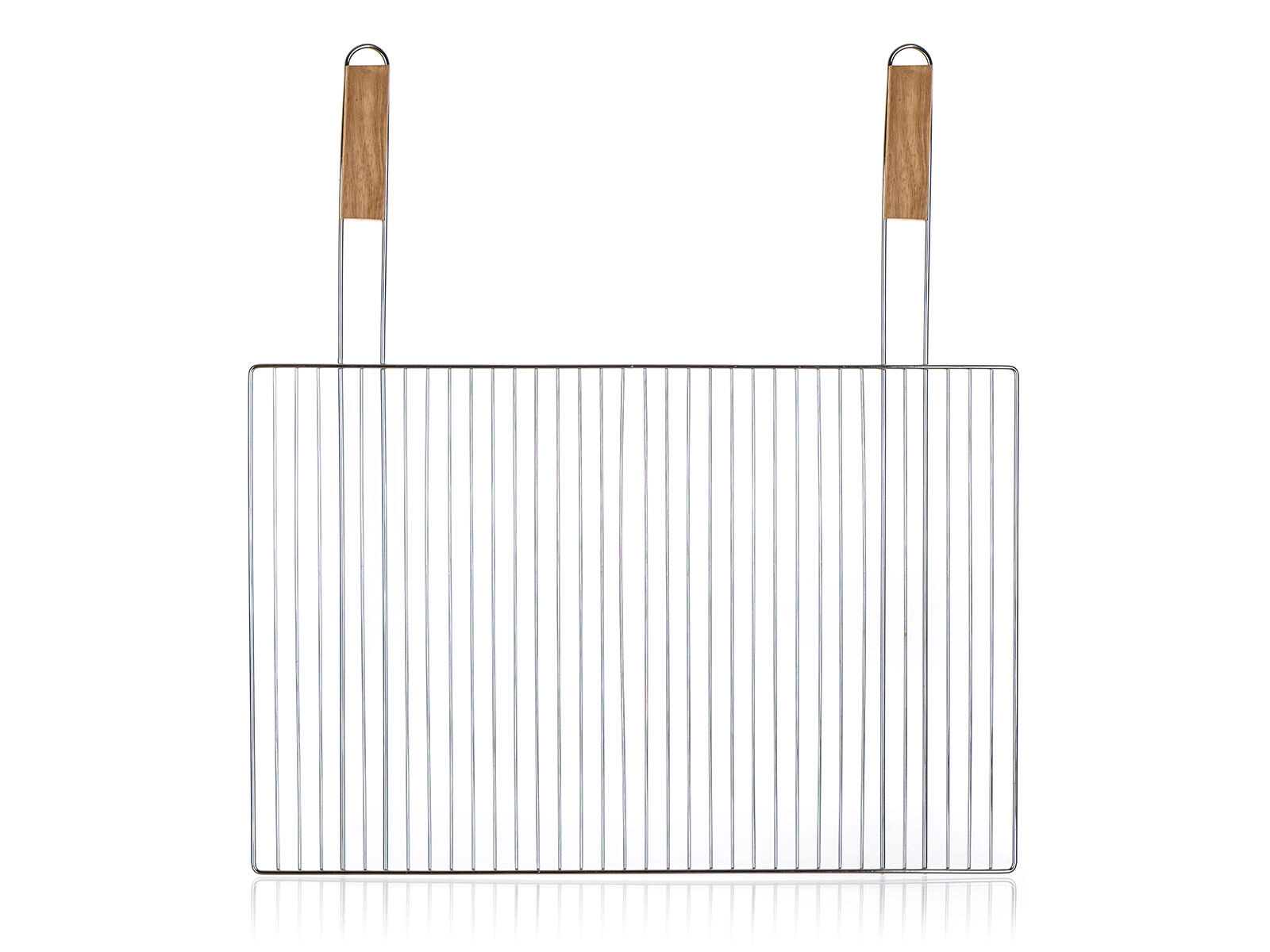 A 60 × 40 cm méretű, téglalap alakú BBQ grillsütő rács ideális választás mindenkinek, aki gyorsan, kényelmesen és kiváló eredményekkel szeretne grillezni. A masszív krómozott acél hosszú élettartamot és könnyű tisztítást garantál, míg a fa fogantyúk növelik a biztonságot és a kényelmet a kezelhetőség során.