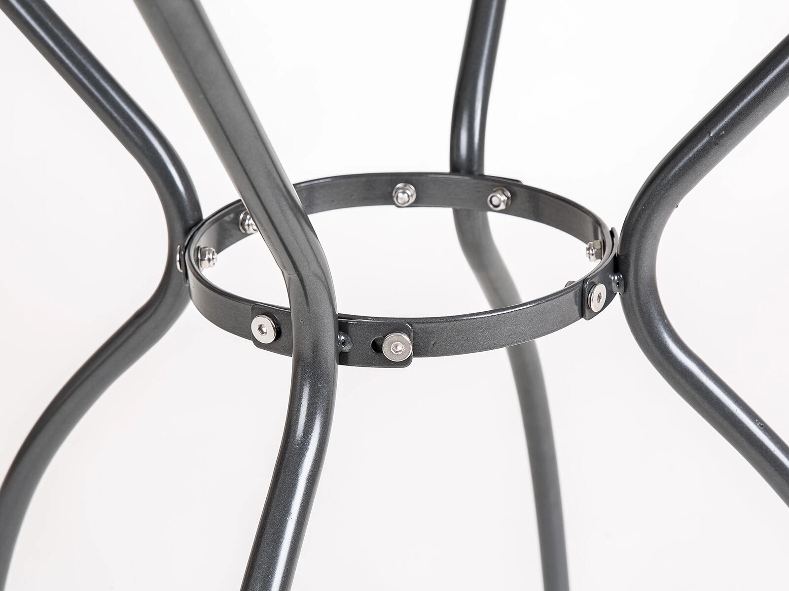 A masszív váz a lábak közötti kör alakú merevítéssel kiváló stabilitást és hosszú élettartamot nyújt, még gyakori kültéri használat mellett is.