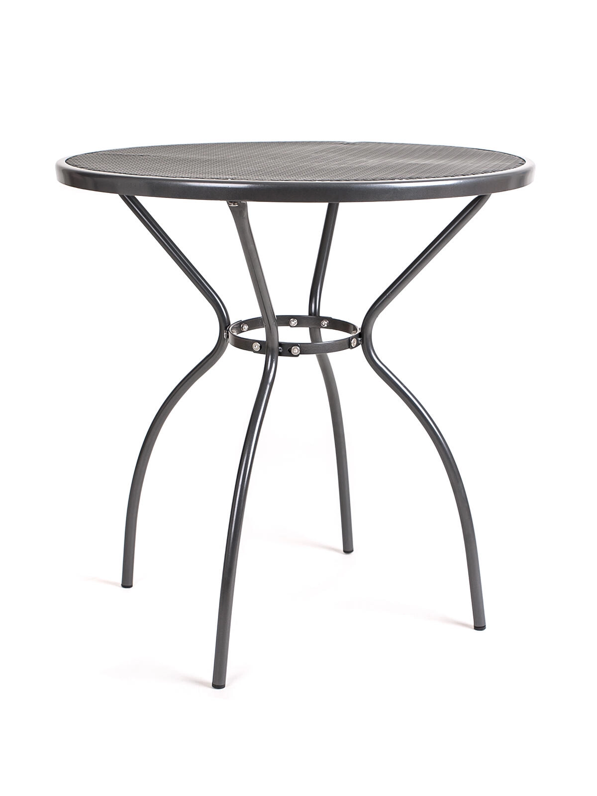 A perforált (hálós) asztallap gyors vízelvezetést és könnyű tisztítást biztosít, a masszív csőlábaik alsó védőkupakokkal kímélik a felületeket és növelik a stabilitást. Az asztal bistros asztalként, lerakóasztalként vagy kisebb étkezőasztalként is használható kültéri ülőhelyekhez.