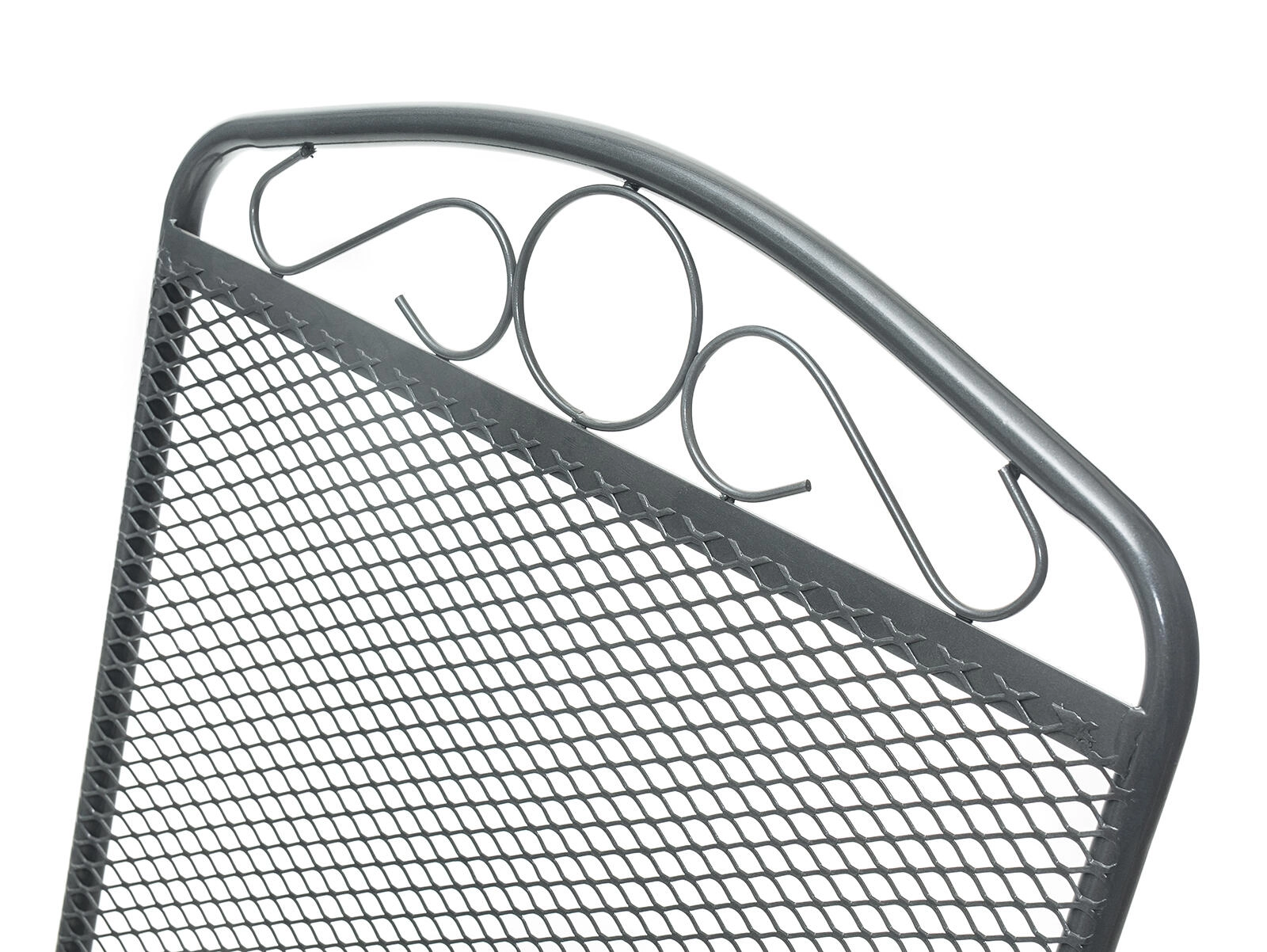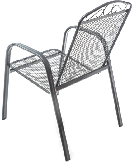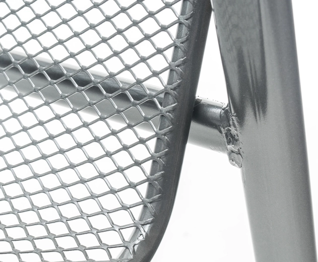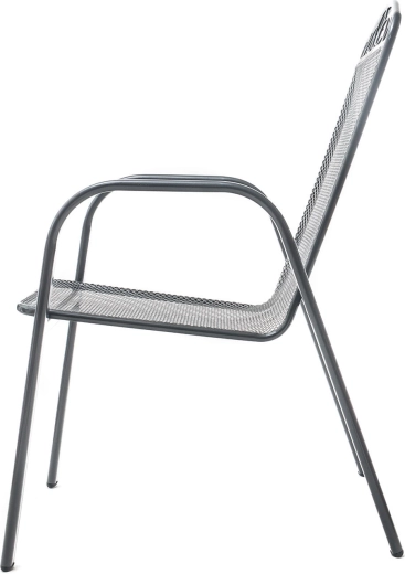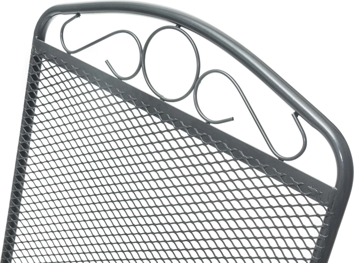 Ez az acél kerti szék a klasszikus megjelenést modern tartóssággal ötvözi. A háttámla felső részén lévő finom dekoráció stílust kölcsönöz, míg az ülőfelület és a támla fémhálója kényelmet, gyors vízelvezetést és egyszerű tisztítást biztosít. A masszív, csővázas keret stabilitást nyújt a mindennapos kültéri használat során.