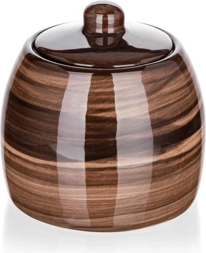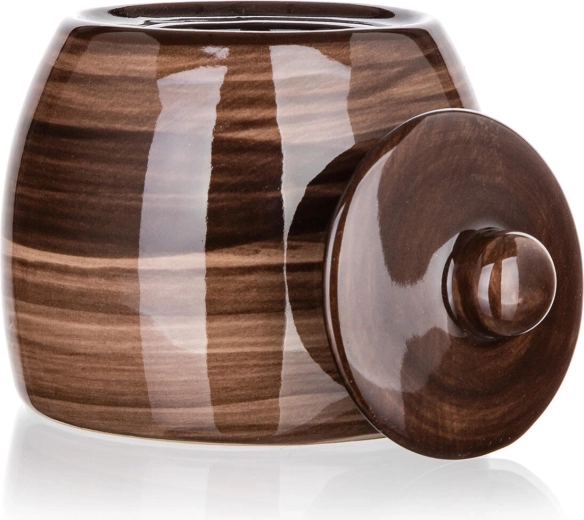 Praktikus, 380 ml űrtartalmú kerámia cukortartó elegáns barna kivitelben, ideális a mindennapi terítéshez. Fedelével a cukor tovább marad friss, a mázas felület pedig könnyen tisztítható. Alkalmas mosogatógépbe és mikrohullámú sütőbe is, így kényelmes használatot és hosszú élettartamot kínál.