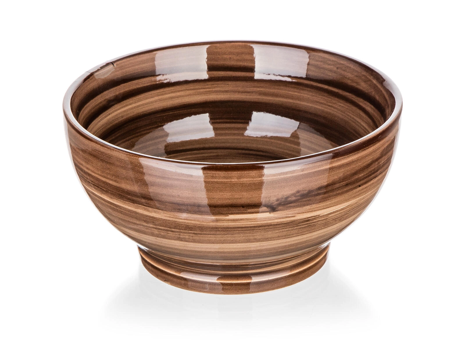 Ez az univerzális tál barna mázzal és finom csíkozott dekorral tökéletes a mindennapi használatra. A stabil talp és a széles perem kényelmes tálalást és egyszerű tisztítást biztosít, míg a minőségi kerámia jól tartja a hőt.