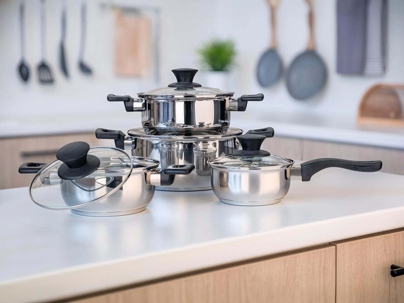 A készlet tartalma: lábas 14 × 7 cm üvegfedővel, fazekak 16 × 8 cm, 18 × 9 cm és 22 × 11 cm – mindegyik üvegfedővel. Ideális választás első konyhába, illetve megbízható frissítésként a meglévő felszereléshez.
