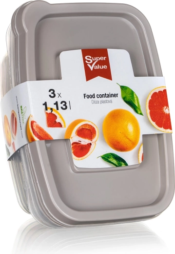 A SUPER VALUE készlet három univerzális, 1,13 literes műanyag dobozt kínál elegáns, Latte színű fedéllel. Az átlátszó testnek köszönhetően mindig gyorsan látható, mi van belül, a szorosan illeszkedő fedél pedig segít megőrizni a frissességet és megelőzni a kiömlést.