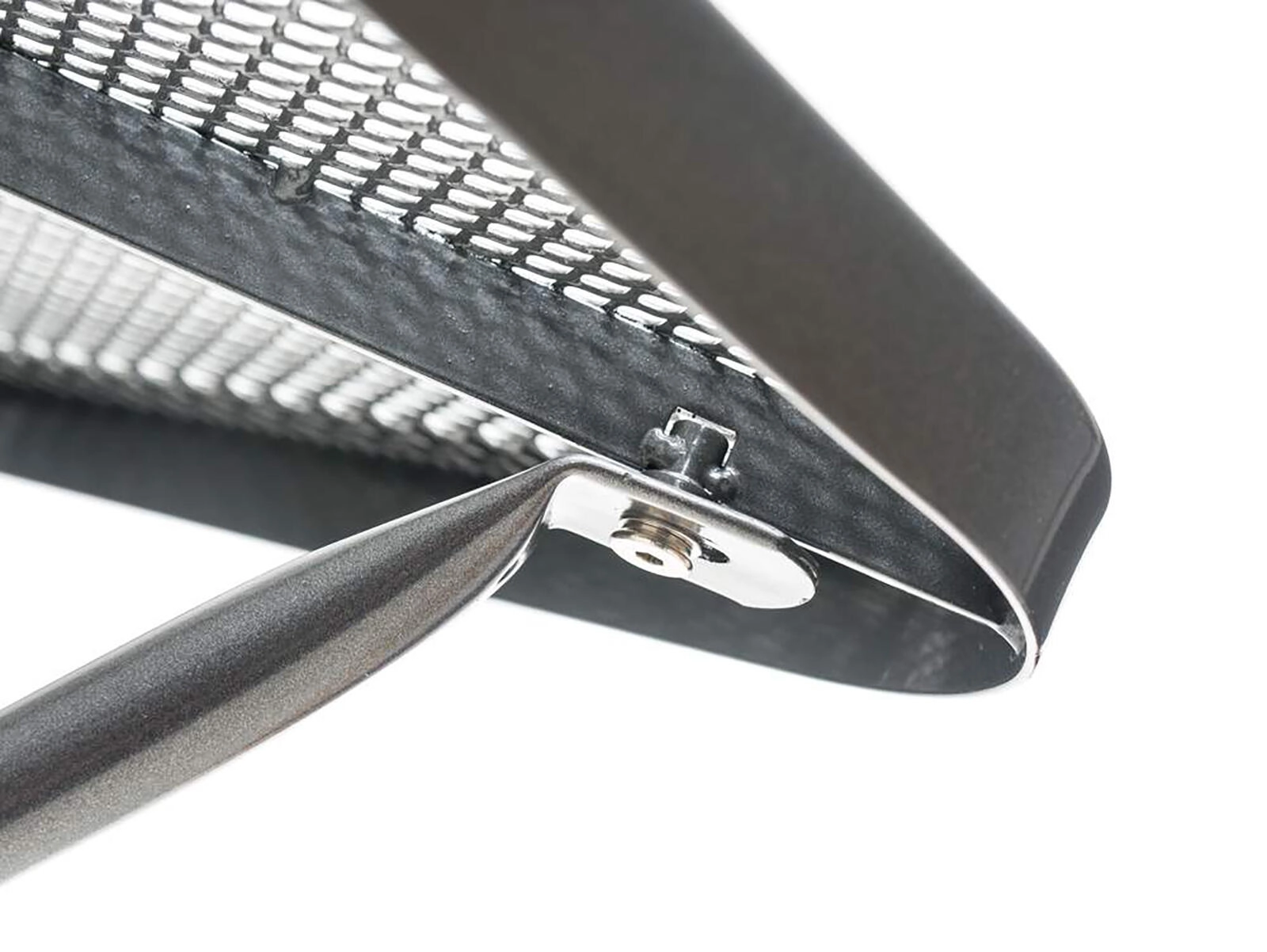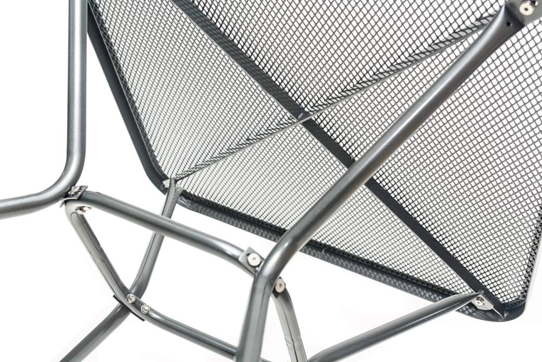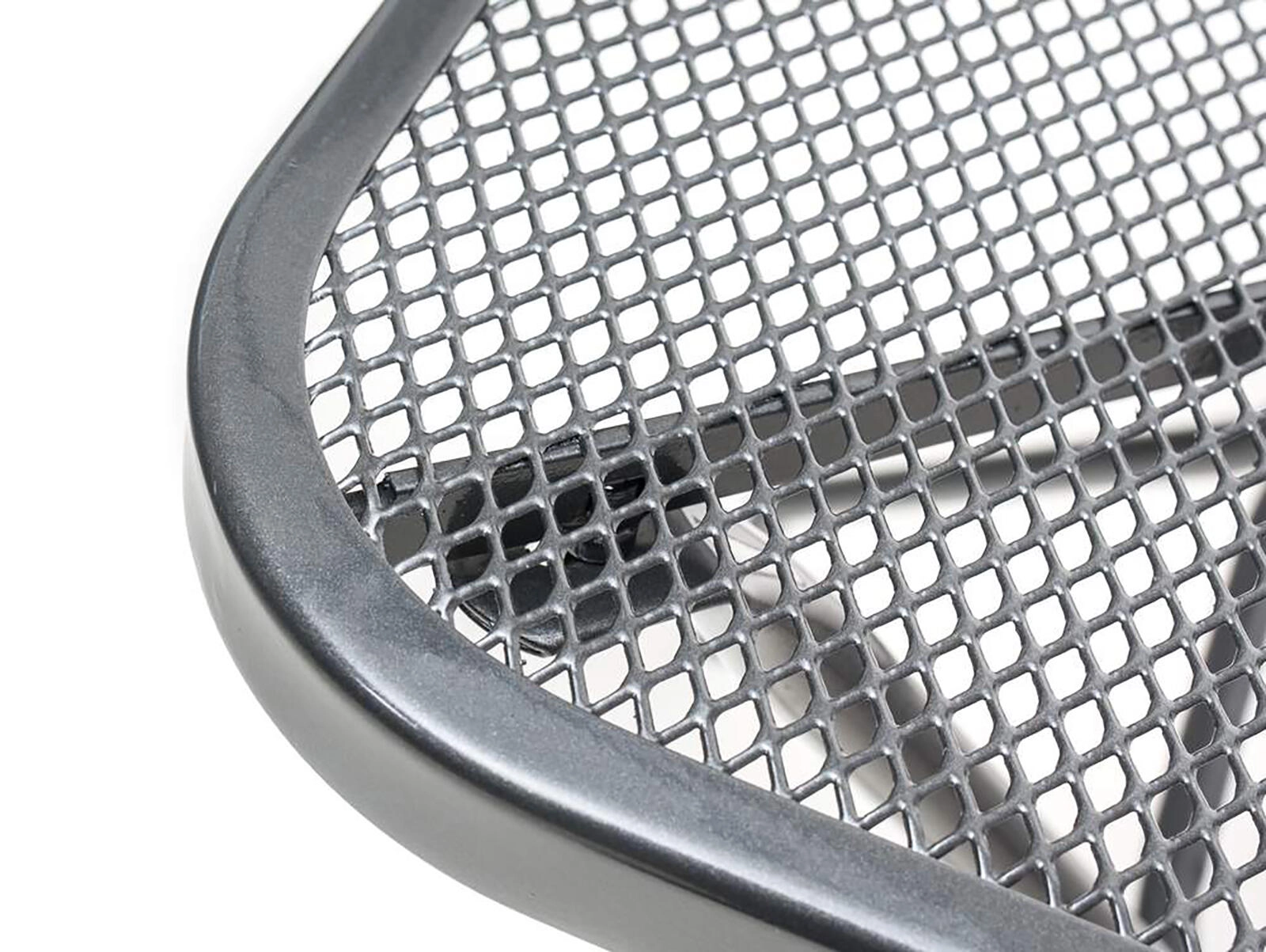 A rácsozott fém asztallap elősegíti a víz elvezetését és a gyors száradást, így az asztal röviddel eső után is használatra kész.