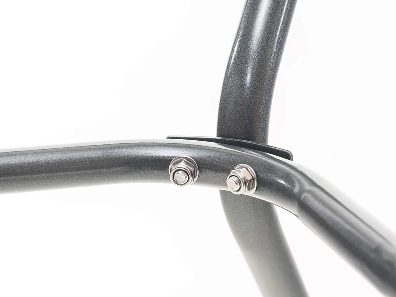 Masszív acélcsövek és megerősített kötések gondoskodnak a szilárdságról, a stabilitásról és a hosszú élettartamról még mindennapos kültéri használat mellett is.