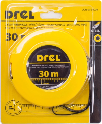 Megbízható Drel acél mérőszalag 30 m hosszúsággal és 10 mm szélességgel, strapabíró, edzett házban – ideális pontos mérésekhez építkezésen és műhelyben. Kínál magas tartósságot, simulékony felcsévélést és hosszú élettartamot a minőségi acélszalagnak köszönhetően.