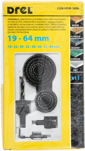 Ez a 11 darabos körkivágó koronakészlet gyors és tiszta kör alakú furatok készítését teszi lehetővé fában és gipszkartonban. A 19–64 mm közötti széles átmérőtartománynak köszönhetően könnyedén megoldhatók a konnektorok beépítése, asztali kábelátvezetők és egyéb szerelési munkák.