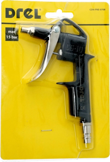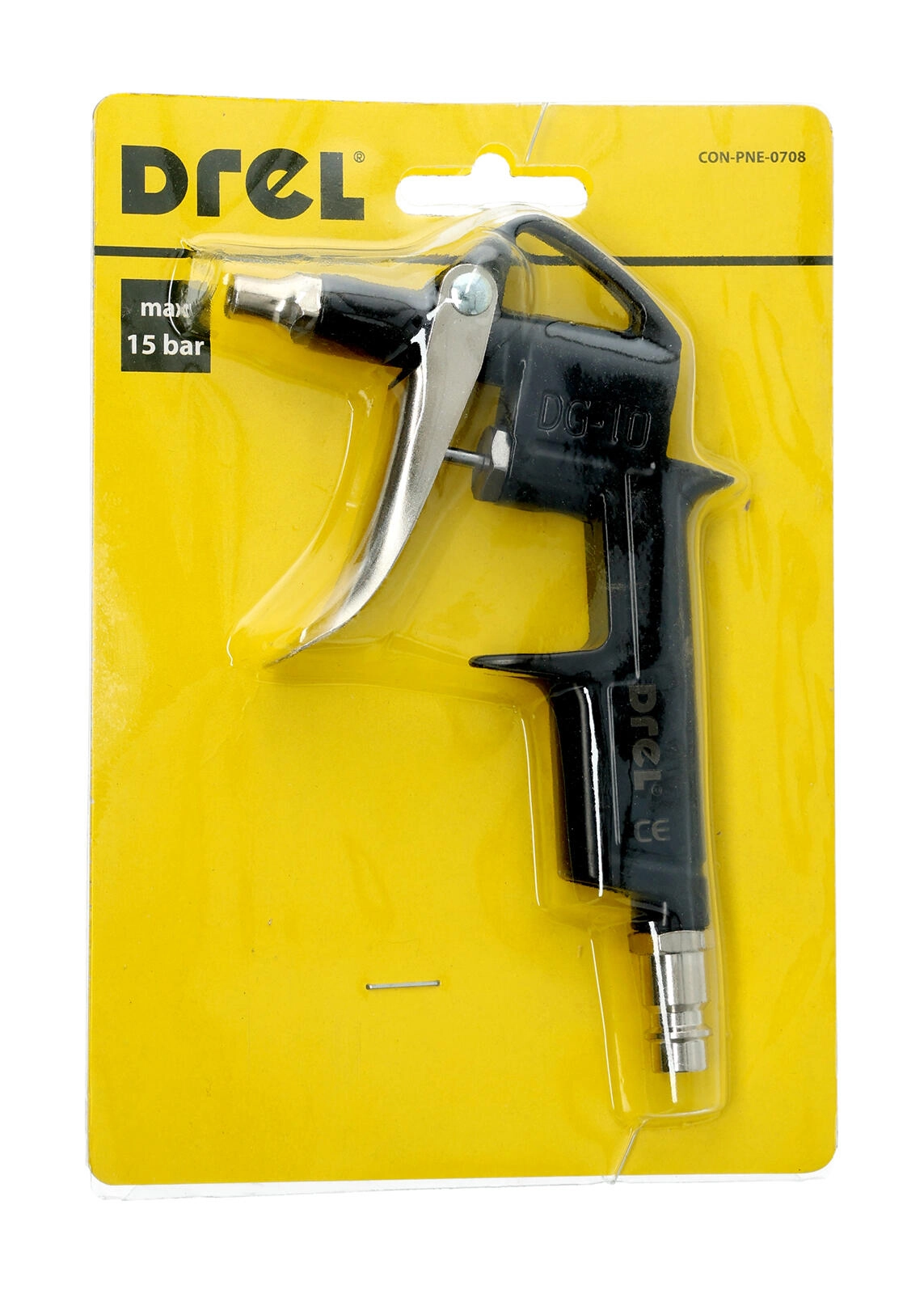 Kompakt Drel kifúvó pisztoly sűrített levegővel történő gyors tisztításhoz és szárításhoz. Maximális nyomás 15 bar, alumínium ház a tartósságért, rövid, 20 mm-es fúvóka a precíz munkához és 1/4" gyorscsatlakozó az egyszerű csatlakoztatáshoz.