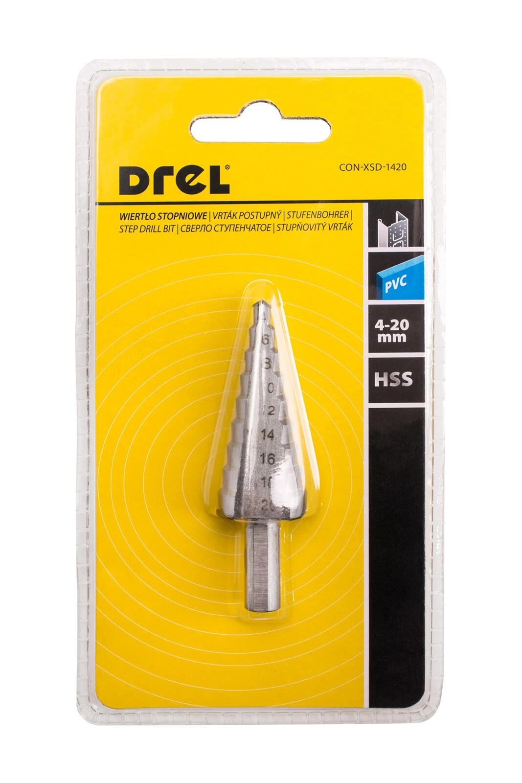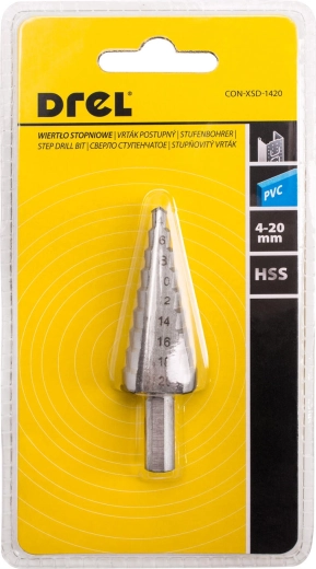 A 4–20 mm tartományú, 9 egyértelműen meghatározott fokozattal rendelkező HSS lépcsős fúró gyors és pontos furatbővítésre készült vékonyfalú anyagokban. A minőségi gyorsacél hosszú élettartamot, sima vágást és minimális vibrációt biztosít.