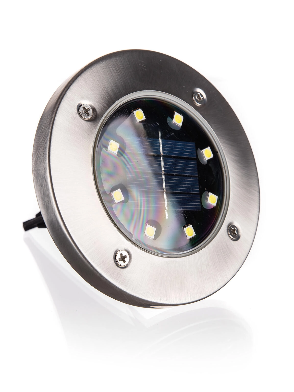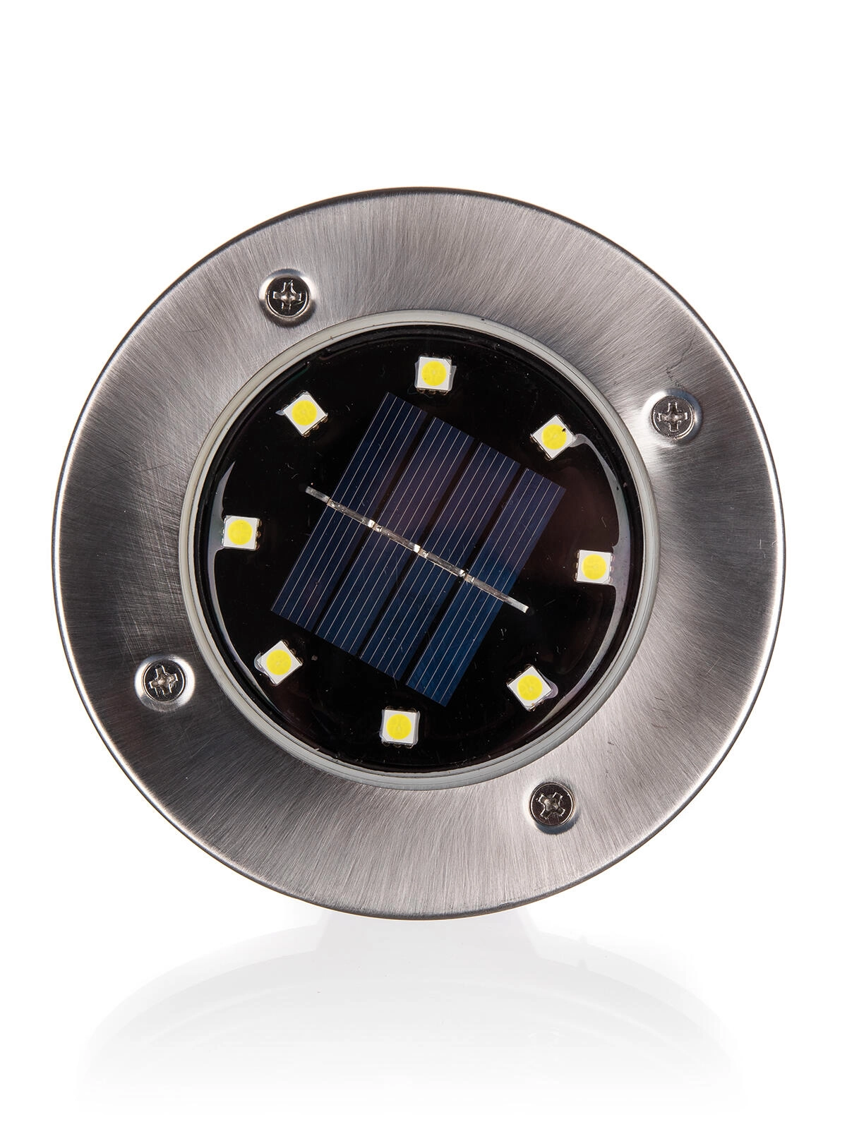 Elegáns, 12 cm átmérőjű napelemes padlólámpa, amely vezeték nélküli kültéri világítást biztosít kábelezés nélkül. A rozsdamentes acél és tartós műanyag kombinációja hosszú élettartamot garantál, a 8 takarékos LED fehér fénnyel automatikusan felkapcsol alkonyatkor. Az IP44 védelemnek köszönhetően ideális járdákhoz, ágyásokhoz és füves felületekhez.
