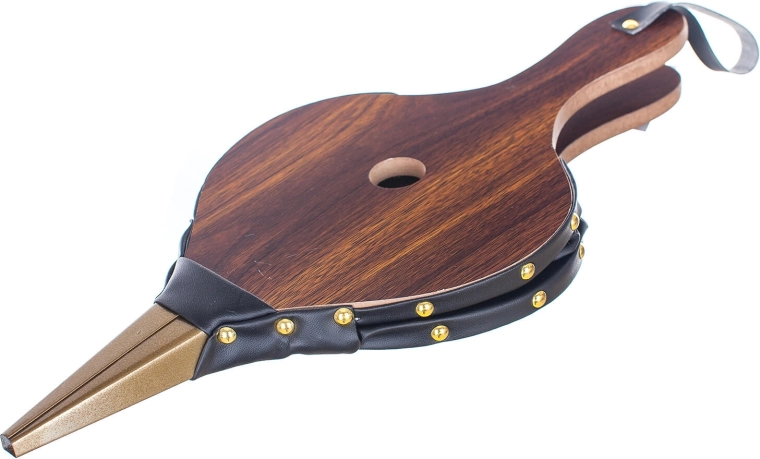 Fa test, erős szegecselt műbőr oldallapok és fém fúvóka a hosszú élettartamért és az állandó teljesítményért.