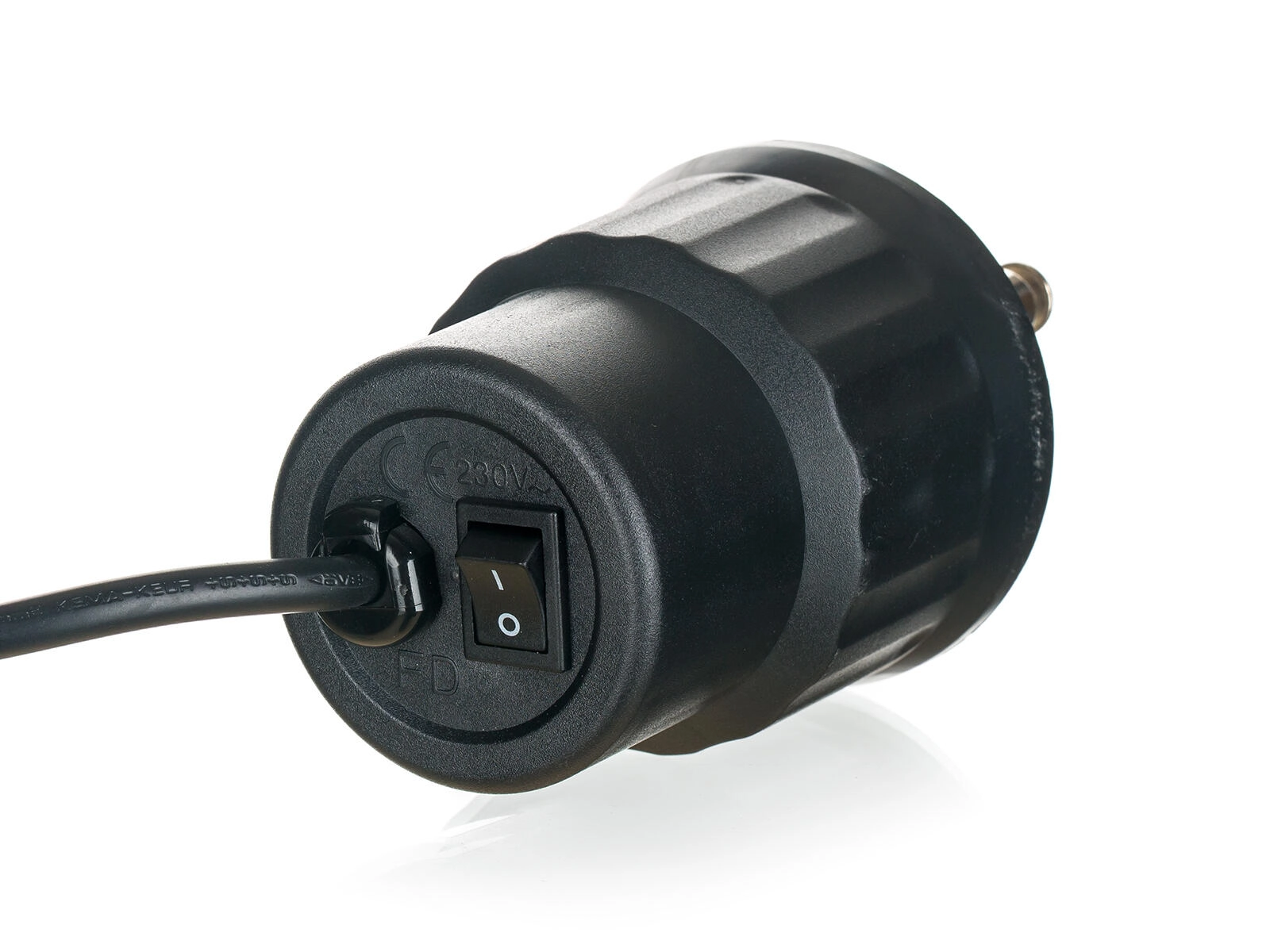 Tartós csatlakozó, a kiválasztott verzióknál kapcsolóval, a biztonságos csatlakoztatásért és a könnyű ki-/bekapcsolásért.