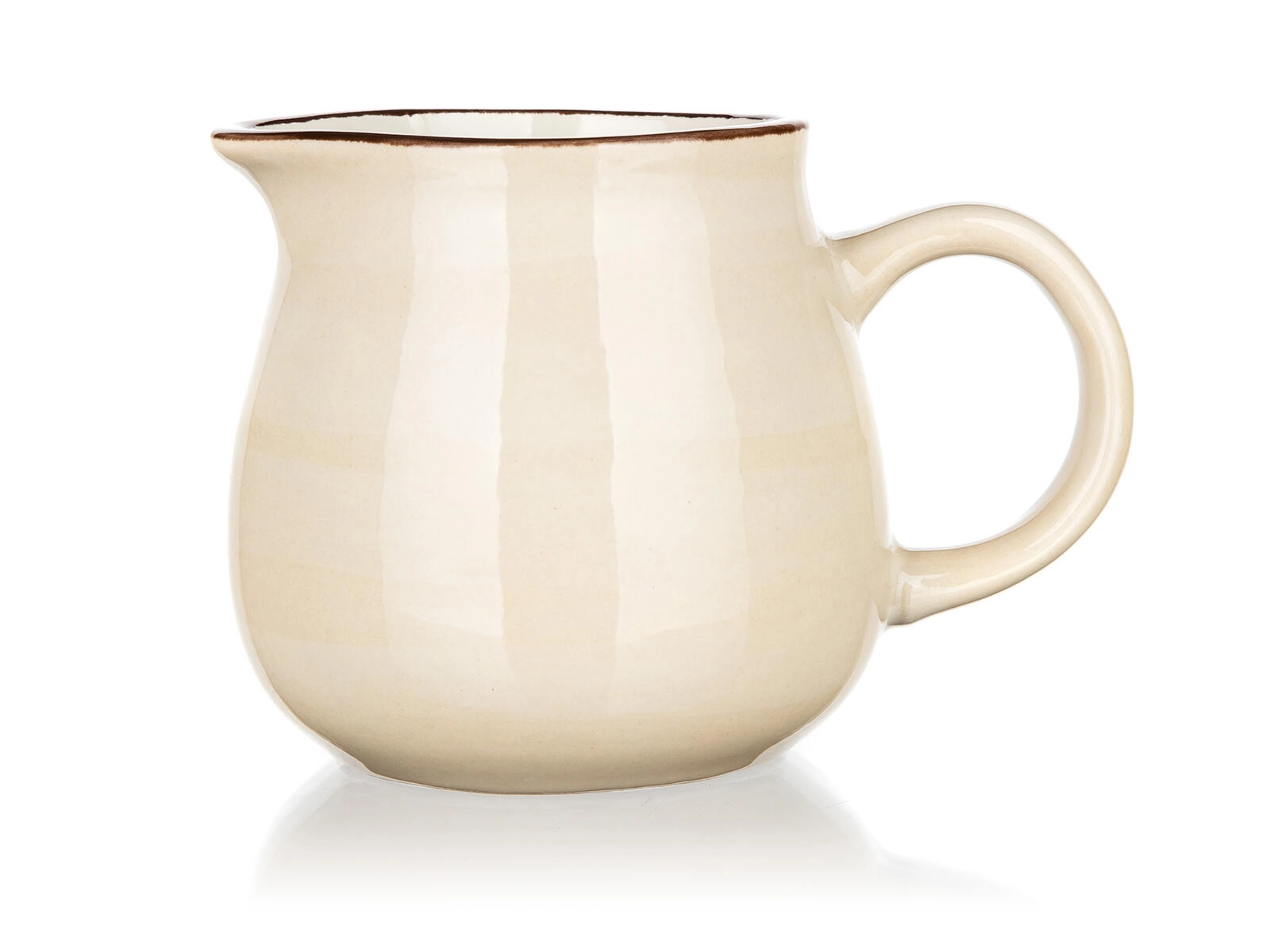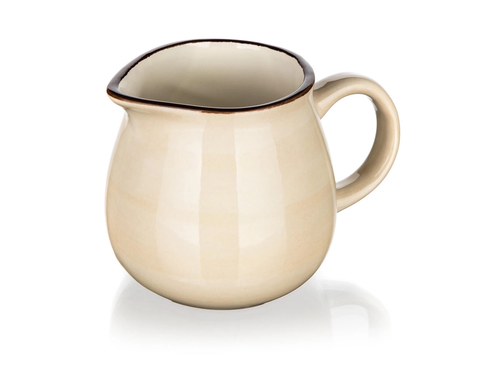 Ez a stílusos 350 ml-es kerámia tejkiöntő krémszínű kivitelben megbízható segítőtárs a tej, tejszín vagy szószok tálalásánál. A minőségi, mázas felület ellenáll a foltoknak és megkönnyíti a karbantartást, míg a sötétebb perem elegáns megjelenést kölcsönöz az edénynek.