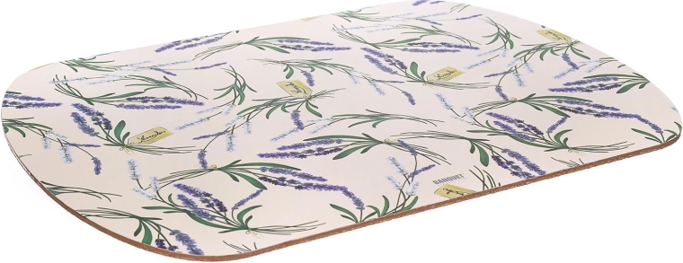 A LAVENDER motívum finom és friss hatású, remekül illik provence és modern stílusú konyhákba és étkezőkbe. A 39 × 28 cm-es kompakt méretnek köszönhetően univerzálisan használható tányérokhoz, bögrékhez és evőeszközökhöz.