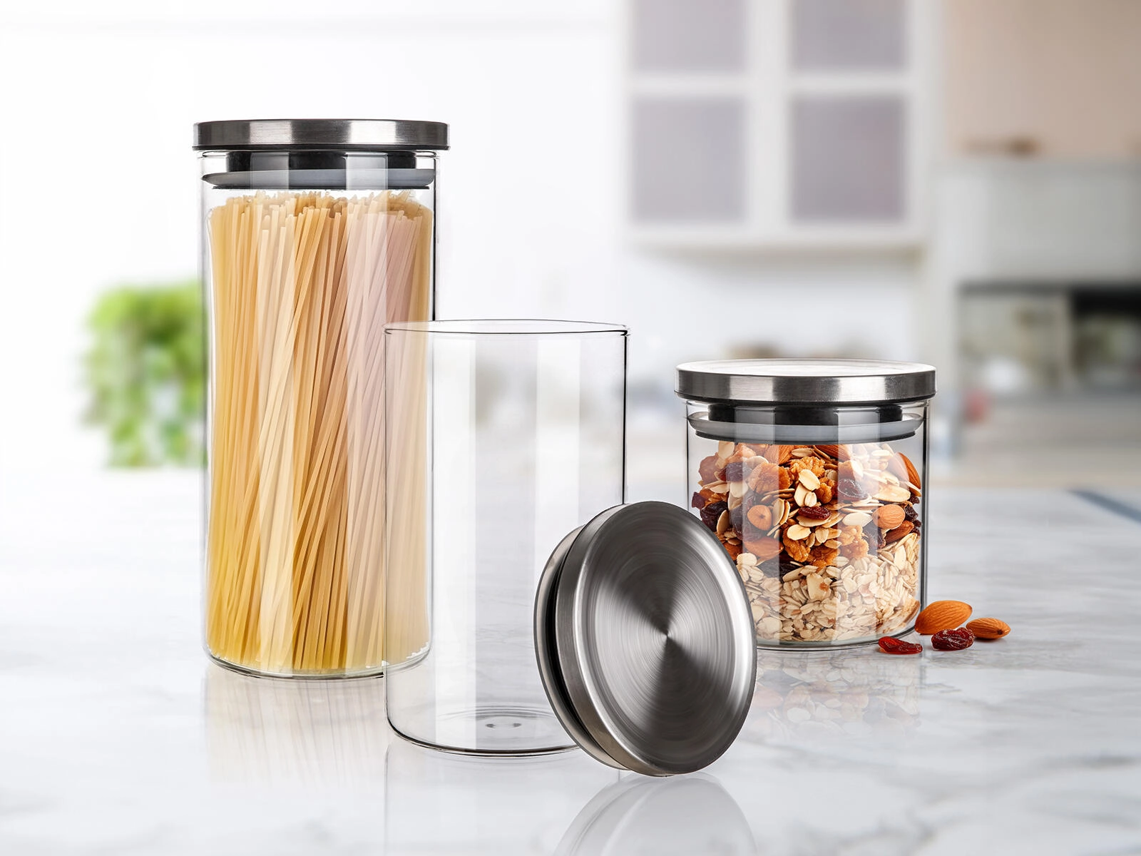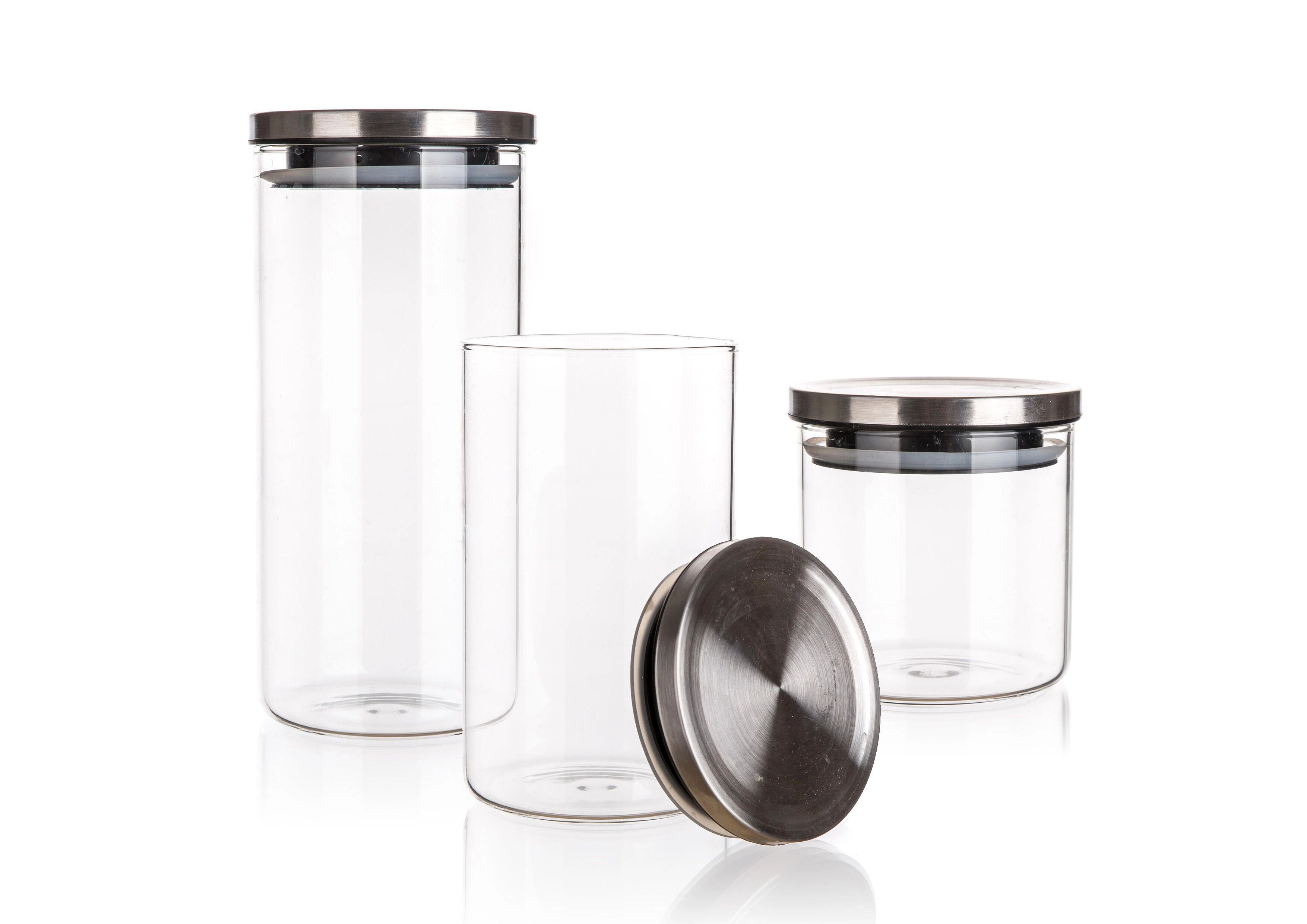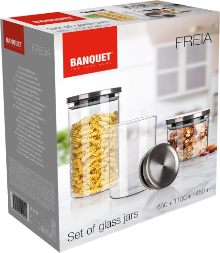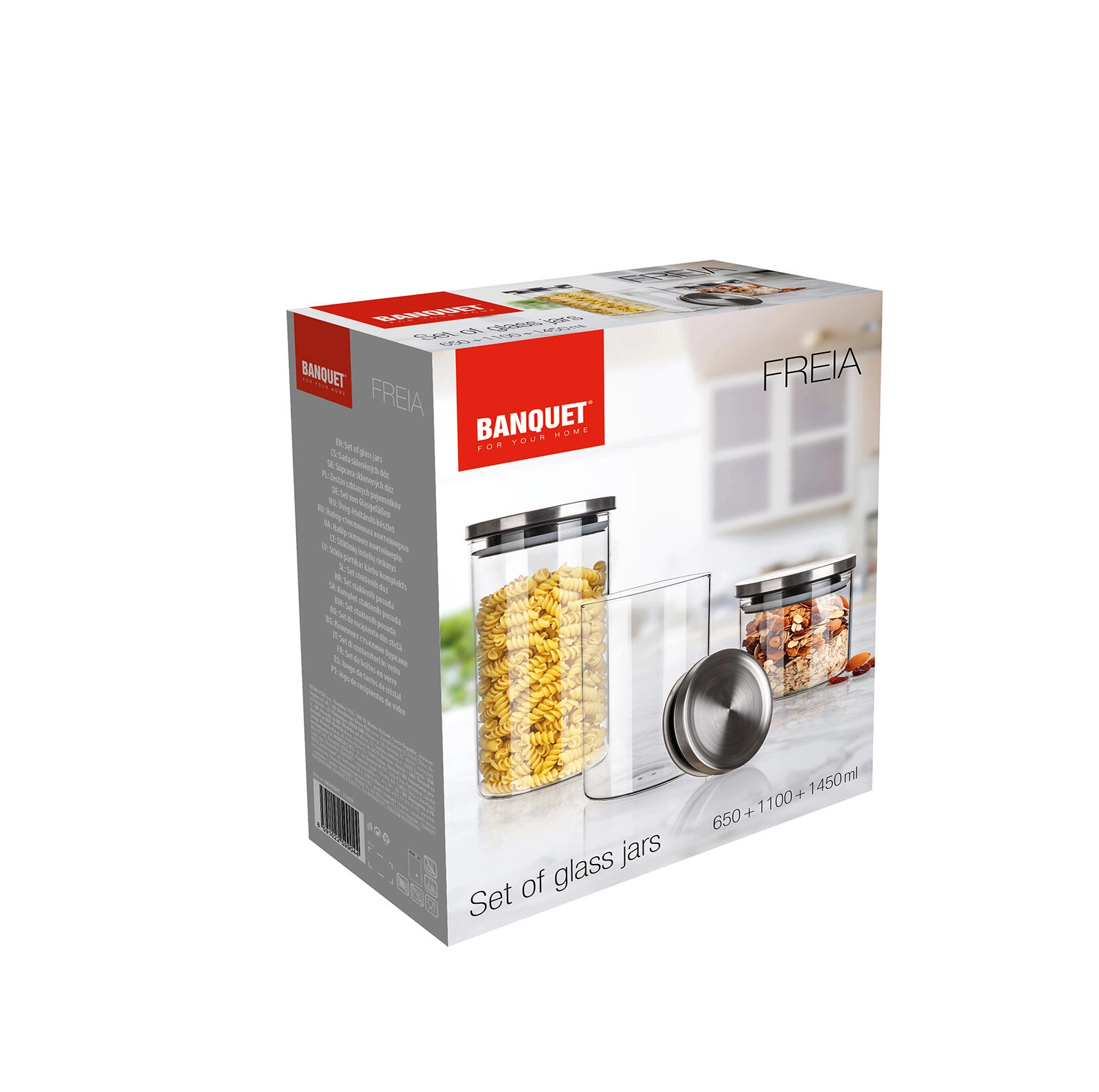 A FREIA készlet elegáns és funkcionális megoldást kínál a kamra mindennapi rendszerezéséhez. A strapabíró, átlátszó üveg lehetővé teszi a készletek könnyű ellenőrzését nyitás nélkül, míg a tömítéssel ellátott rozsdamentes acél fedők segítenek tovább frissen tartani az élelmiszereket.