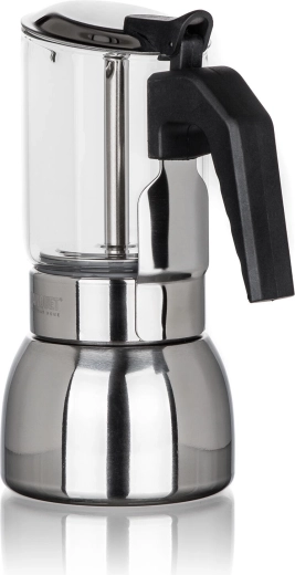 A 200 ml-es űrtartalom 4 kis csészényi, eszpresszó stílusú, intenzív kávéra elegendő. A kávéfőző megbízhatóan működik minden elterjedt főzőlaptípuson, beleértve az indukciót is, és biztonsági szeleppel van ellátva a stabil nyomásért és a gondtalan elkészítésért.