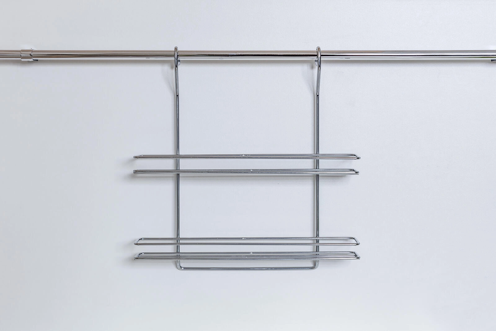 Praktikus, függesztett, kétszintes polc krómozott acélhuzalból, amely átlátható tárolást biztosít fűszereknek és kisebb tégelyeknek. A kompakt 37 × 37 × 9 cm-es méreteknek, a masszív fémkivitelnek és a nyitott rácsos dizájnnak köszönhetően minden szem előtt és azonnal kézre esik.