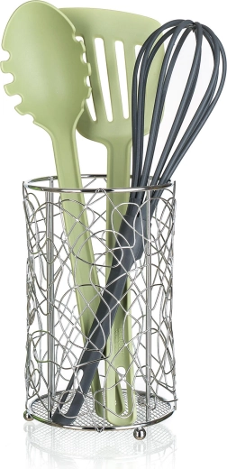 Ideális kanalak, villák, spatulák vagy habverők tárolására közvetlenül a konyhapulton. A kompakt méretek helytakarékosak, ugyanakkor elegendő helyet kínálnak a mindennapi szükségletekhez. A stabil alap segít megelőzni a felborulást, és rendezetten tartja a munkafelületet.