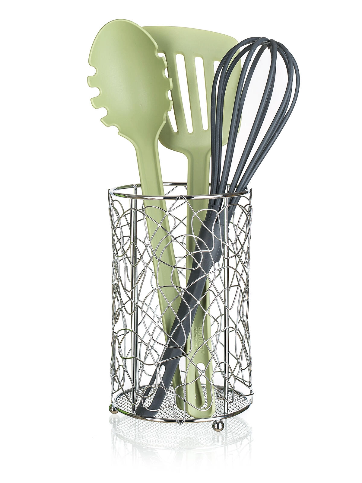 A VANITY evőeszköztartó állvány elegáns és strapabíró segítőtárs a mindennapi főzéshez. A nyitott drótszerkezet kiváló légáramlást biztosít, így az evőeszközök és konyhai eszközök gyorsan megszáradnak, miközben a krómozott felület időtálló megjelenést ad és megkönnyíti a karbantartást.